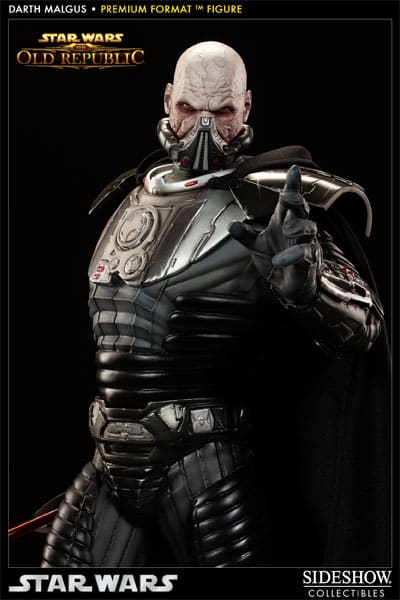 From the massive multiplayer online game title, The Old Republic, Sideshow Collectibles proudly introduces the Darth Malgus Premium Format figure. Presented in approximate 1:4 scale, the formidable commander of the Imperial Army is outfitted with detailed armor, a custom tailored fabric cape and brilliant light-up lightsaber. Giving a dynamic and dramatic look at the darker side of the Force, the Darth Malgus Premium Format figure is crafted with exceptional attention to detail, an outstanding addition to any collection.