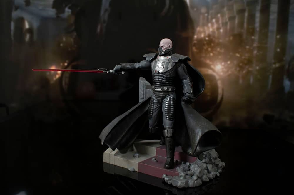 One of the deadliest Sith lords is now the next Gallery Diorama from Gentle Giant LTD! Leveling his red-bladed lightsaber at an opponent, the deadly fighter and Force-wielder stands approximately 10 inches tall and features a removable hood. Made of high-quality PVC, this sculpture is based on Malgus’ appearance in the video game Star Wars: The Old Republic. He comes packaged in a full-color window box.
