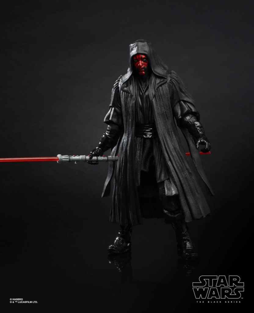 The evil Sith apprentice Darth Maul engages in a fierce lightsaber duel with Qui-Gon Jinn and Obi-Wan Kenobi.