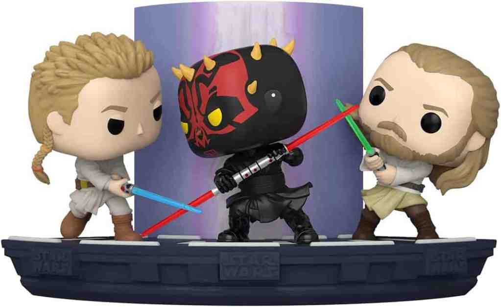 The STAR WARS™, Duel of the Fates Funko Pop! Deluxe Collection is a new set of 3 combinable bobbleheads, starting with the Pop! Deluxe Darth Maul™! This collection will capture the iconic moment from STAR WARS: THE PHANTOM MENACE™. When all the bobbleheads are combined, they will create a cohesive shelf display to set the scene! Vinyl bobblehead is approximately 5.75-inches tall and 4.5-inches long.