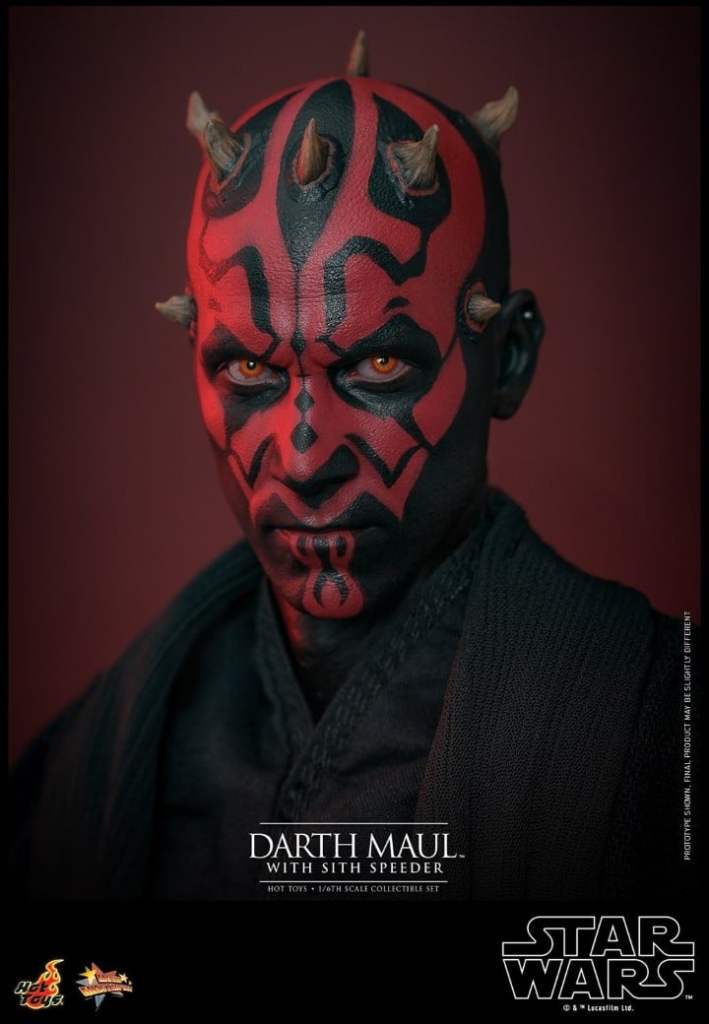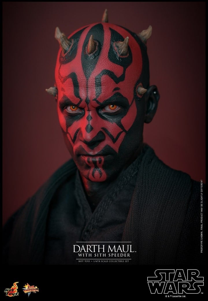 In celebration of Star Wars Day and the 25th anniversary of Star Wars Episode I: The Phantom Menace, Hot Toys is specially releasing the of 1/6th scale Darth Maul with Sith Speeder collectible set. Enjoy an even more refined and impressive rendition of Darth Maul with the interchangeable head sculpts that captured his intense expressions, and the outfit that were carefully recreated to ensure the highest level of authenticity. The highly-detailed collectible figure is beautifully crafted based on the appearance of Darth Maul in the film, features two newly developed head sculpts with separate rolling eyeball system showcasing serious and grinning expressions, newly tailored robe with enhanced fitting, Darth Maul’s iconic double-bladed Lightsaber™ with USB powered LED light-up function, a Sith probe droid, binoculars, a range of interchangeable hands for various posing options.
