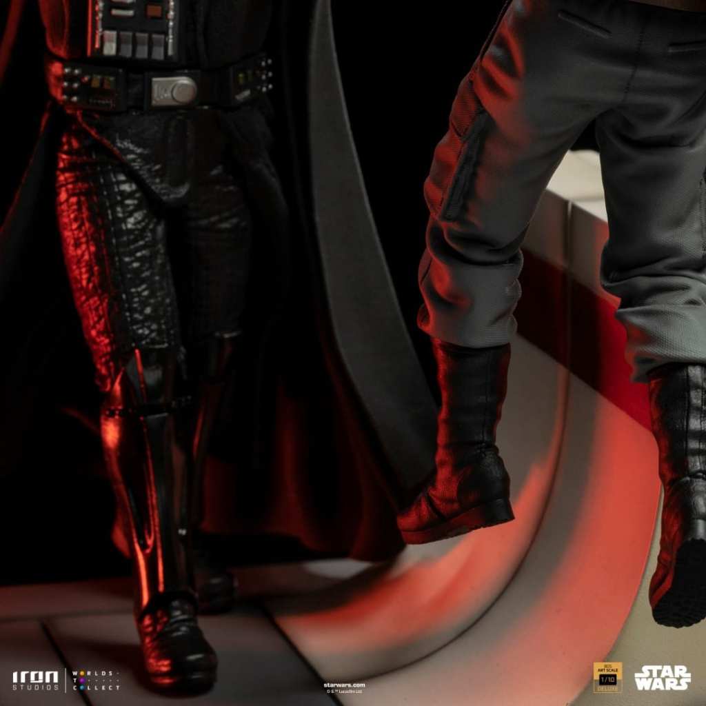Ruthless and moved by pain, bitterness, and hatred that led him to the dark side of the Force, the imposing and unmistakable figure wearing black armor walks along one of the narrow corridors of the rebel ship known as Profundity in search of the stolen imperial plans, where a small group of rebel soldiers tries to stop him in vain. Using the power of the Force in a lugubrious way, with his left fist clenched he suffocates one of the soldiers, lifting him to the air, while he moves his red lightsaber repelling shots from the other soldiers’ blaster weapons. One of the most memorable scenes in the entire Star Wars saga, presented at the end of the movie „Rogue One: A Star Wars Story“ that moved and impacted fans in the movie theaters worldwide, now is portrayed by Iron Studios, now with their global license, in the statue „Darth Vader BDS – Rogue One: A Star Wars Story – Art Scale 1/10“, where the fearsome Lord Sith is seen in action like never before.