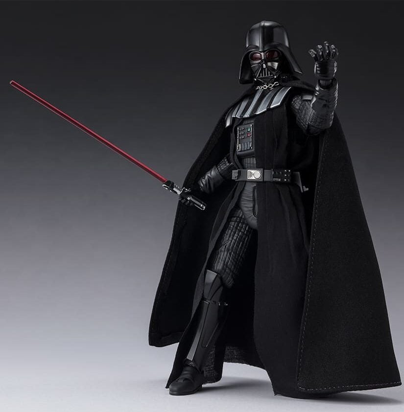 Darth Vader has been brought to life with a realistic inner cloak made of cloth and a wide range of motion.