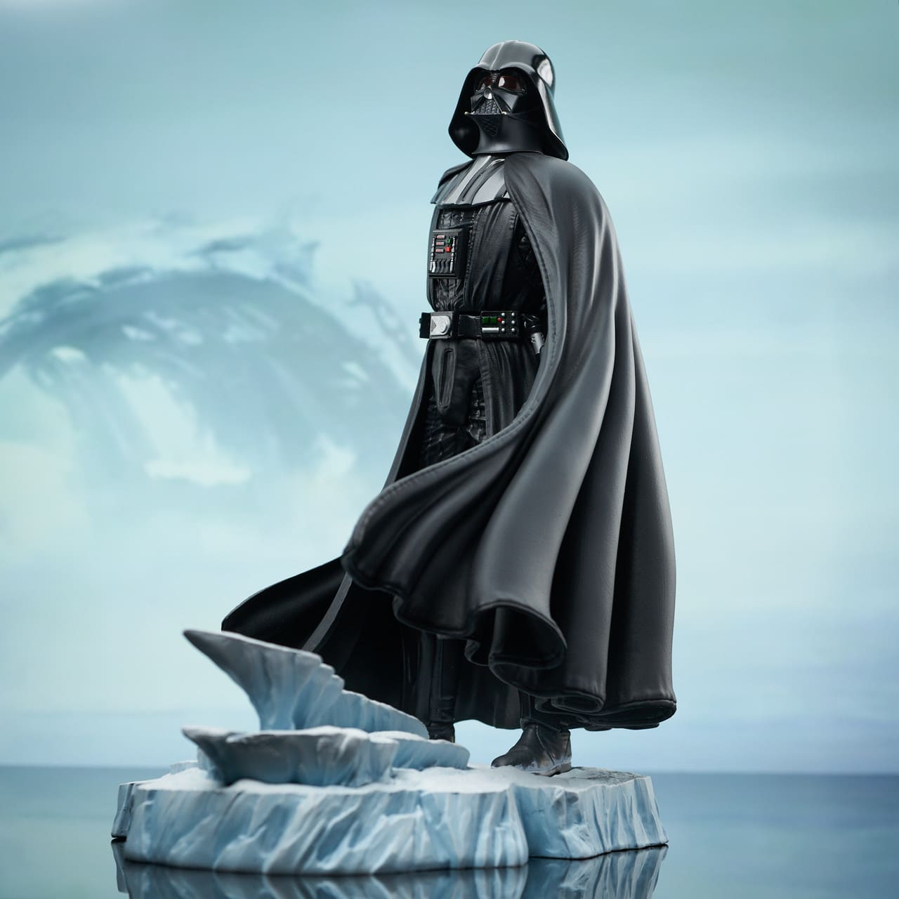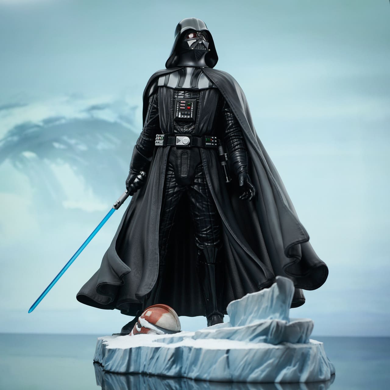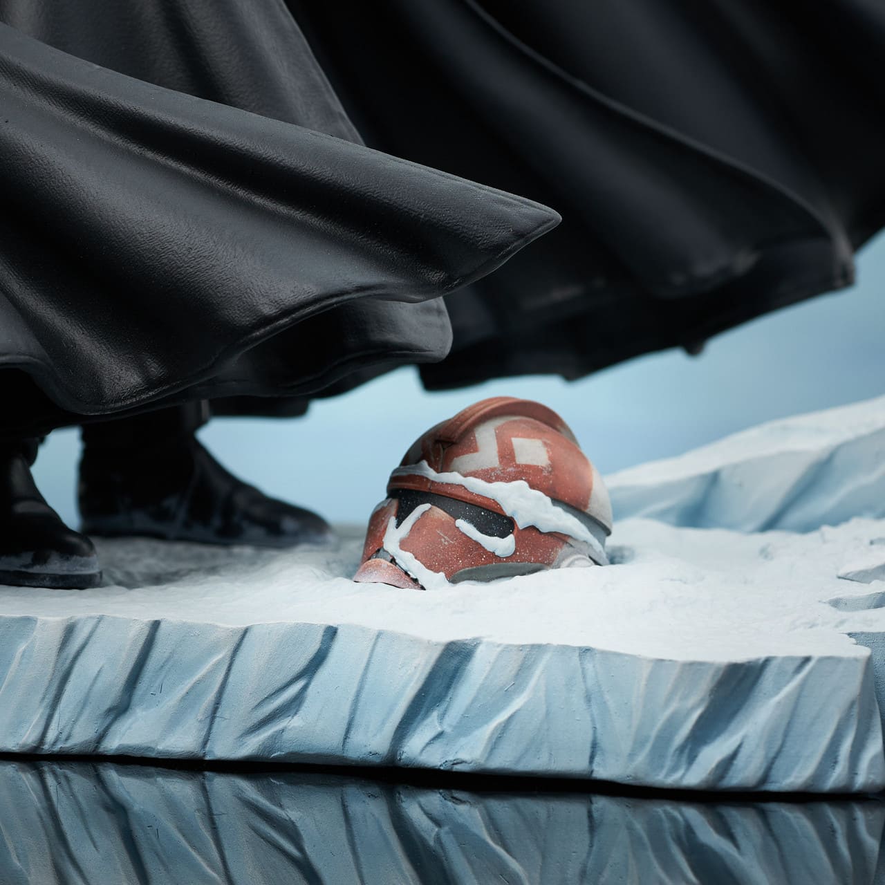 It’s the end of one chapter and the start of another, in this new, web-exclusive Milestones statue! Based on the Clone Wars finale, this 1/6 scale statue of Darth Vader depicts him holding Ahsoka’s blue lightsaber and standing on a snowy landscape near a discarded Clone Trooper helmet. Plus, if you line up the snow patterns just right, a portrait of Ahsoka appears! Measuring approximately 14 inches tall, this statue is limited to only 1000 pieces and comes packaged in a full-color box with a numbered certificate of authenticity.