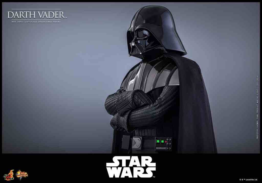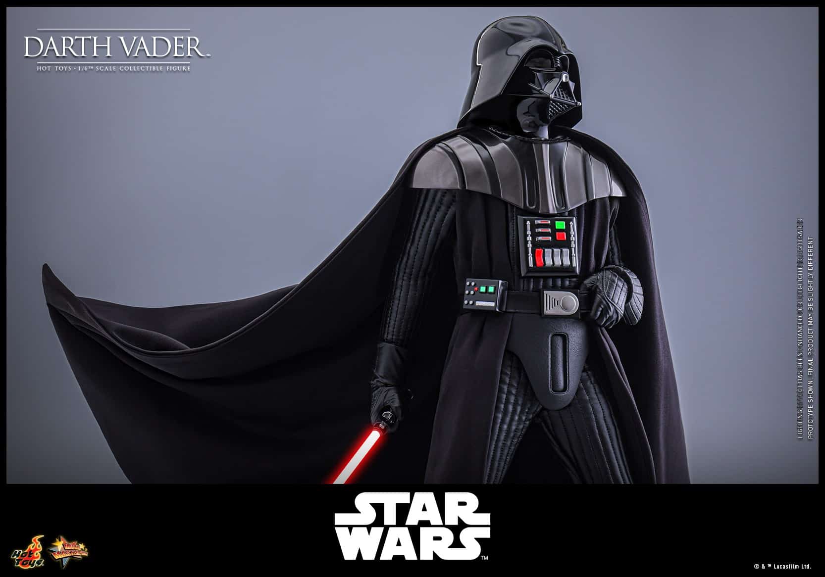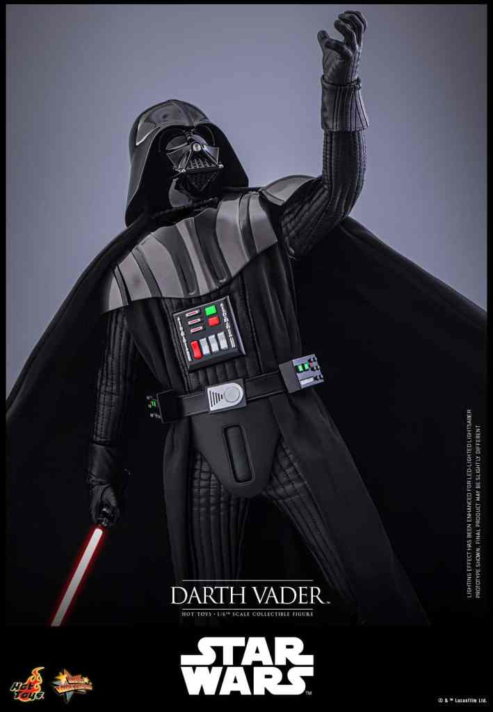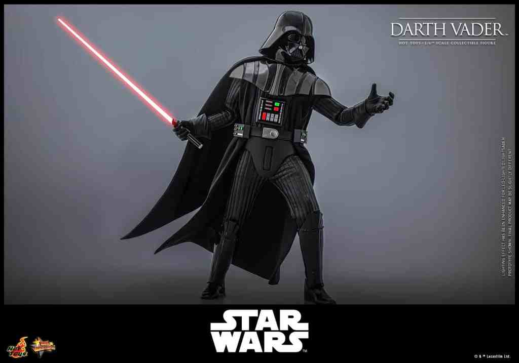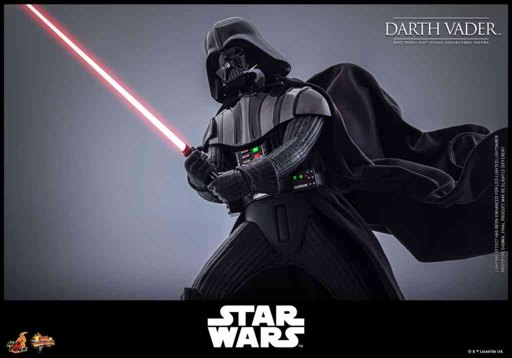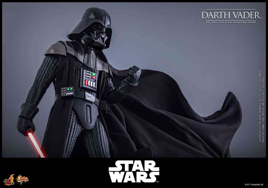 The figure features a newly developed helmet and a highly accurate battle-damaged head sculpt, a finely tailored black suit and armor, and an LED-lighted chest panel and belt, all authentically replicated to reflect Vader’s appearance in the film. With over 30 points of articulation, a selection of interchangeable hands, collectors can pose Vader in various stances that highlight his commanding presence. It also comes with lightsabers, a space station theme LED-lighted figure base and backdrop.