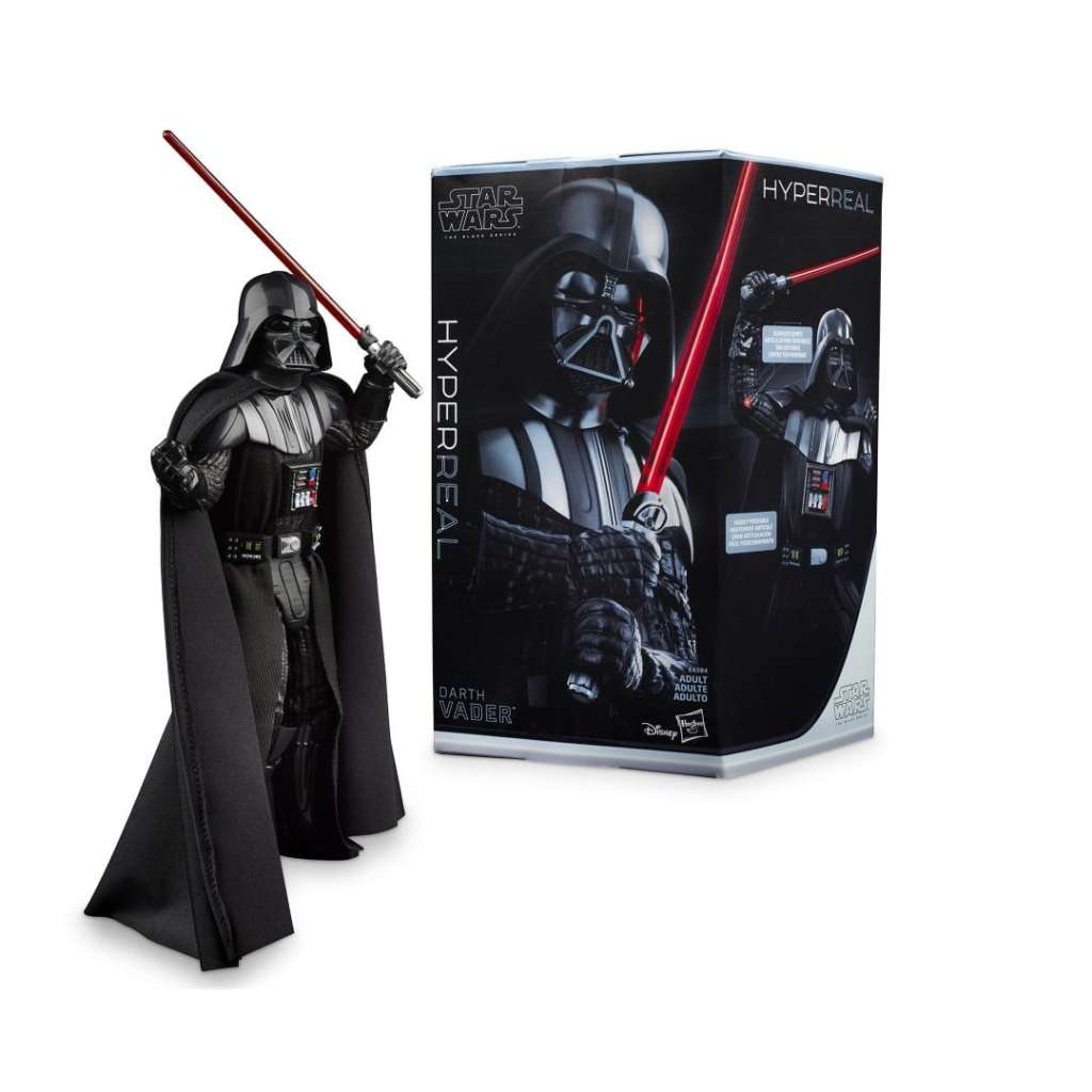 Einst war er ein heldenhafter Jedi-Ritter, doch Darth Vader ließ sich von der dunklen Seite der Macht verleiten. Er dient weiterhin dem Imperator, folgt dem Willen seines Meisters und tritt gegen die Rebellenallianz an. Dank eines sehr realistischen Designs und Bewegungspunkten sowie einer Außenhaut und einer inneren Skelettstruktur für Posen laden Star Wars The Black Series Hyperreal Figuren die Fans dazu ein, galaktische Szenen aus der Star Wars Serie nachzuspielen, die die Star Wars Comics, Filme und Animationsserie umfasst. Das detailgetreue, durch die Serie inspirierte Star Wars Design macht diese 20 cm großen Figuren zu einer beeindruckenden Erweiterung jeder Star Wars Figurenkollektion. (Figuren jeweils separat erhältlich.