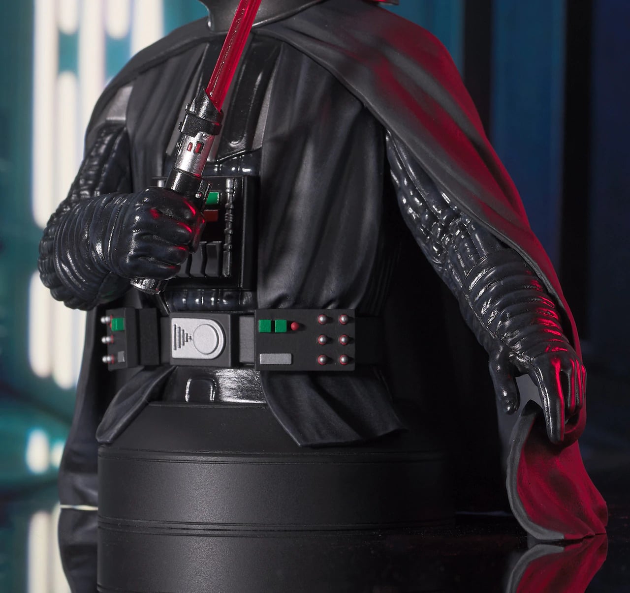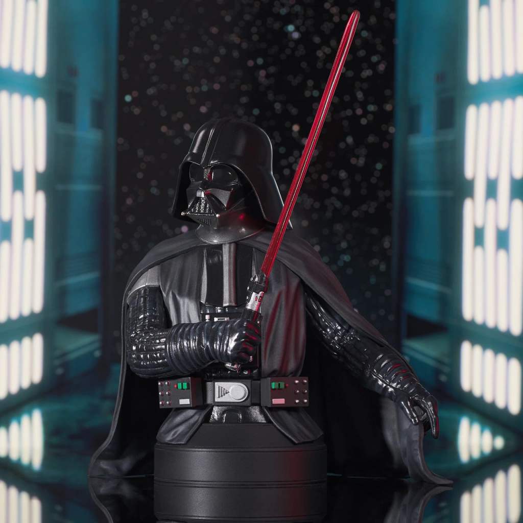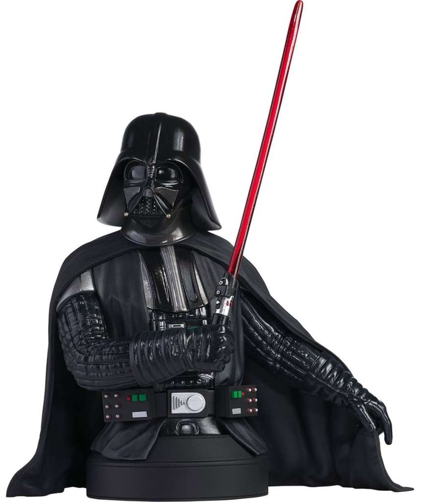 A Gentle Giant Ltd. release! The Dark Lord of the Sith ignites his crimson lightsaber blade in this all-new 1/6 scale mini-bust! Depicting Darth Vader with his cape in one hand and lightsaber in the other, this approximately 8-inch bust features detailed sculpting and paint applications. Limited to only 3000 pieces, it comes packaged with a numbered certificate of authenticity in a full-color box. Designed by the Silva Bros., sculpted by Anissa Tchoub.