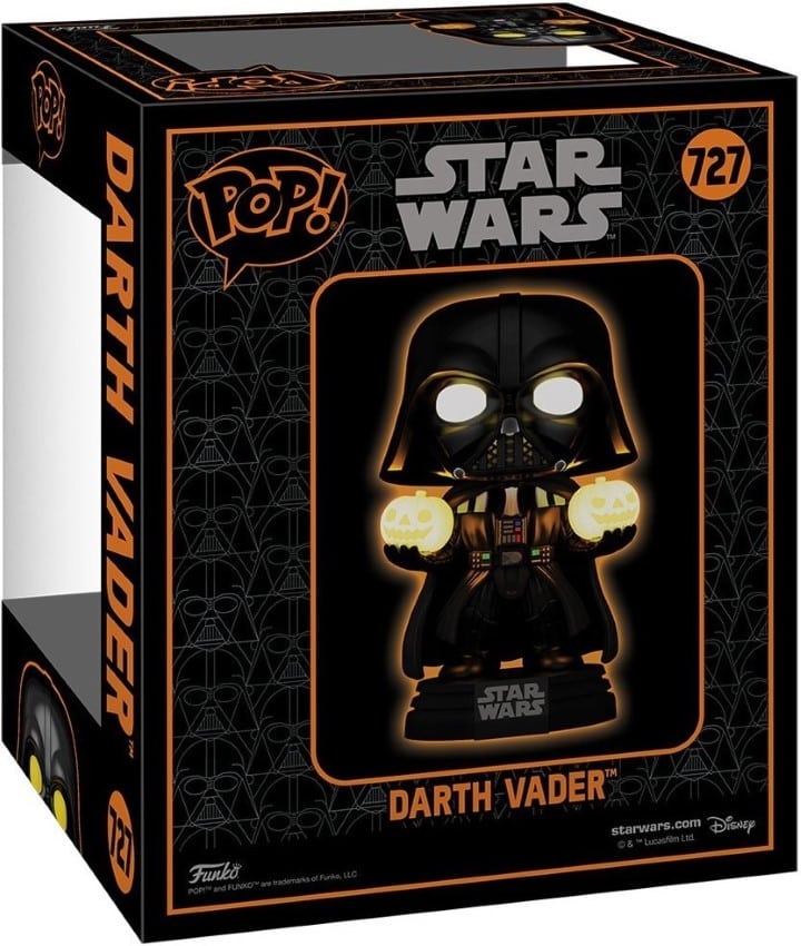 A frightful addition to the Dark Side™ has arrived! With jack-o-lanterns in hand, this Light Up Super Pop! Darth Vader™ is ready to join the spooktacular Halloween merriment in your Star Wars collection!