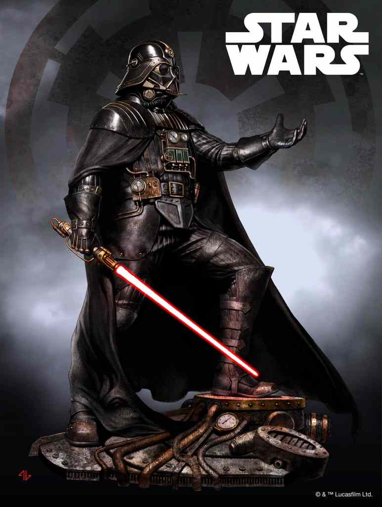 Standing triumphantly, Darth Vader™ takes on a uniquely steampunk appearance in the work entitled “Industrial Empire”. World-renowned artist Adi Granov created this exclusive illustration in collaboration with Lucasfilm just for Kotobukiya!