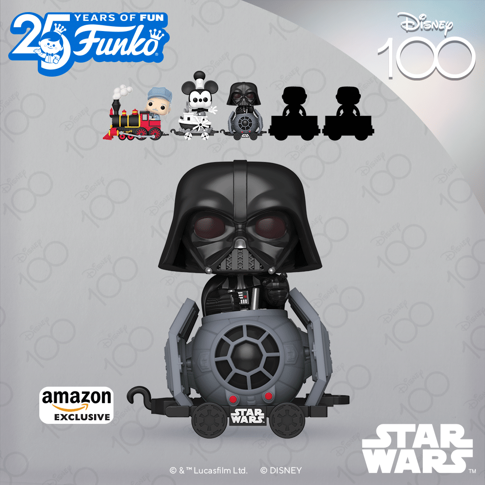 All aboard! Bring a piece of Disney magic home with the galaxy’s most stellar villain. Embrace the Dark Side™ in your home with Pop! Darth Vader™ on Tie Fighter. Celebrate Disney’s 100th Anniversary with this exclusive Pop! Darth Vader™ on Tie Fighter as he rides along in a reimagined train car version of his iconic fighter ship. Collect Pop! Darth Vader™ on Tie Fighter for your Disney train and complete your Pop! Trains collection. Vinyl figure is approximately 5.6-inches tall.