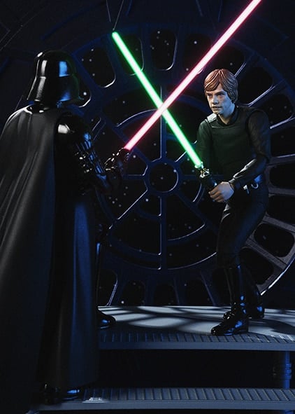 It can reproduce the confrontation scene in the „Return of the Star Wars Episode VI Jedi“.