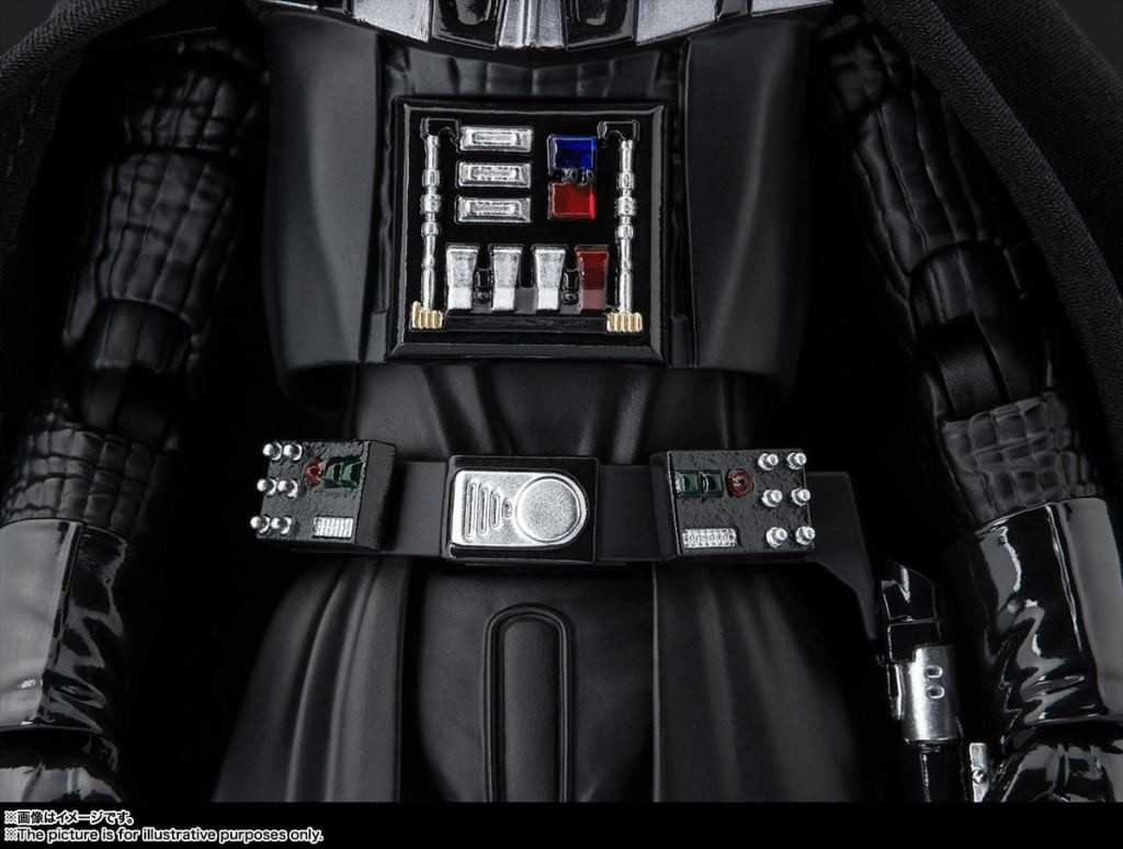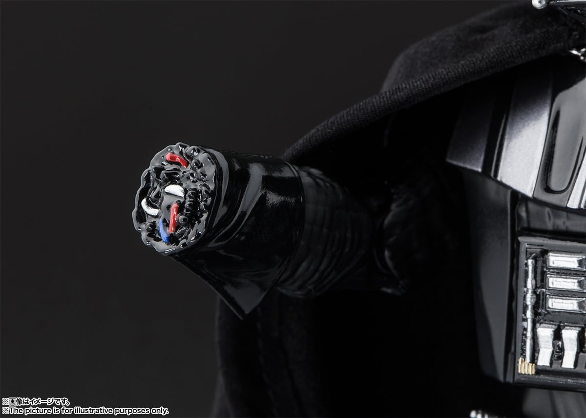 The proportions of his entire body have been rebalanced from the 2015 release of “S.H.Figuarts Darth Vader”, and the much-anticipated bare face parts have been thoroughly recreated down to the back of his head with digital coloring by Soul.