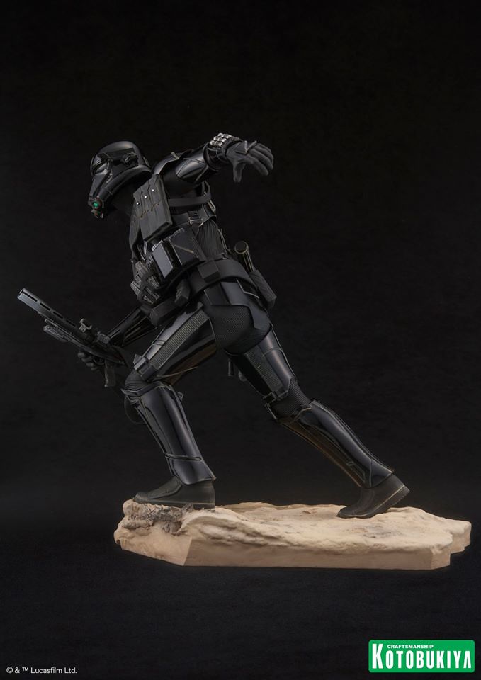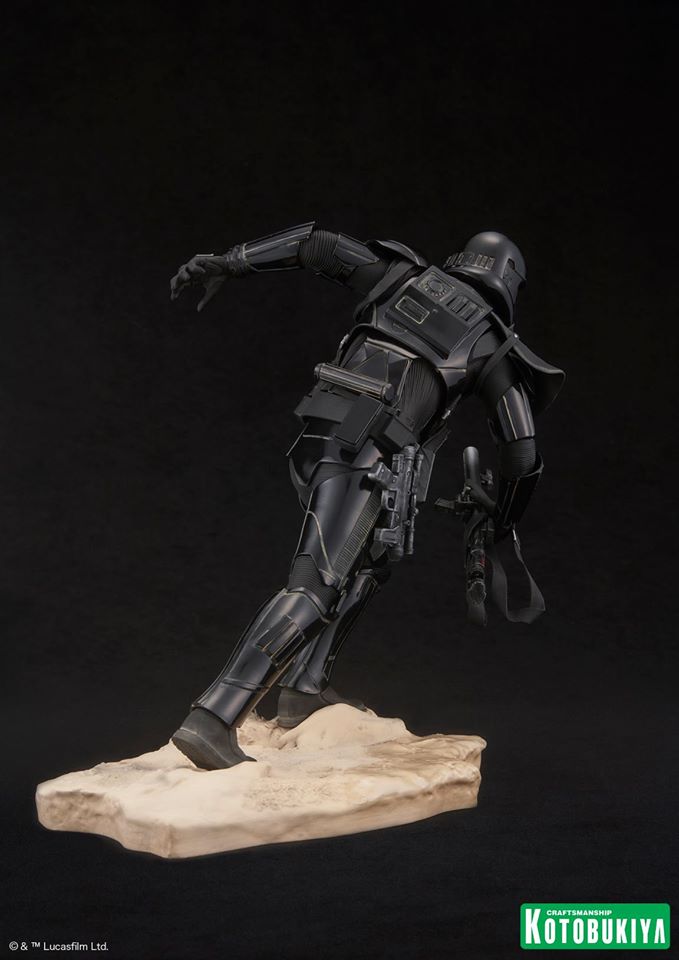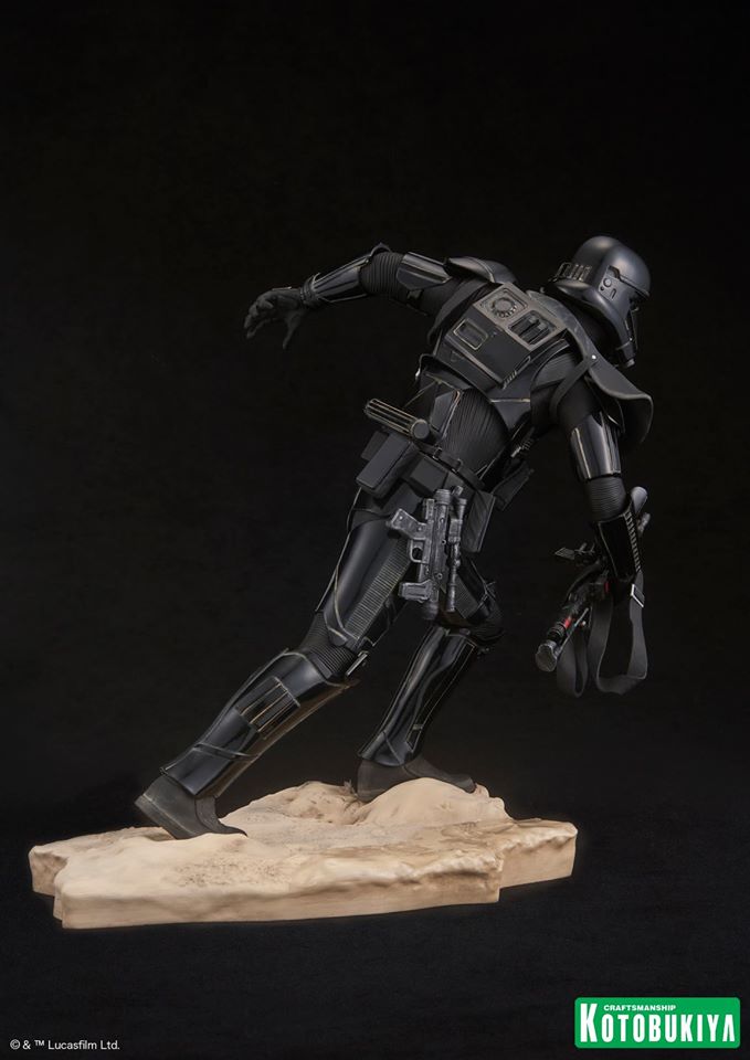 Kotobukiya returns to their 1/7 scale Star Wars ArtFX line with the Death Trooper from Rogue One: A Star Wars Story! The Death Trooper is displayed in action, charging forward toward the enemies of the evil Galactic Empire. Highly detailed sculpt recreates the armor and weapons as seen on-screen. The Death Trooper has LED light ups at the helmet, stands 24 cm tall and comes with a base sculpted to resemble combat terrain.