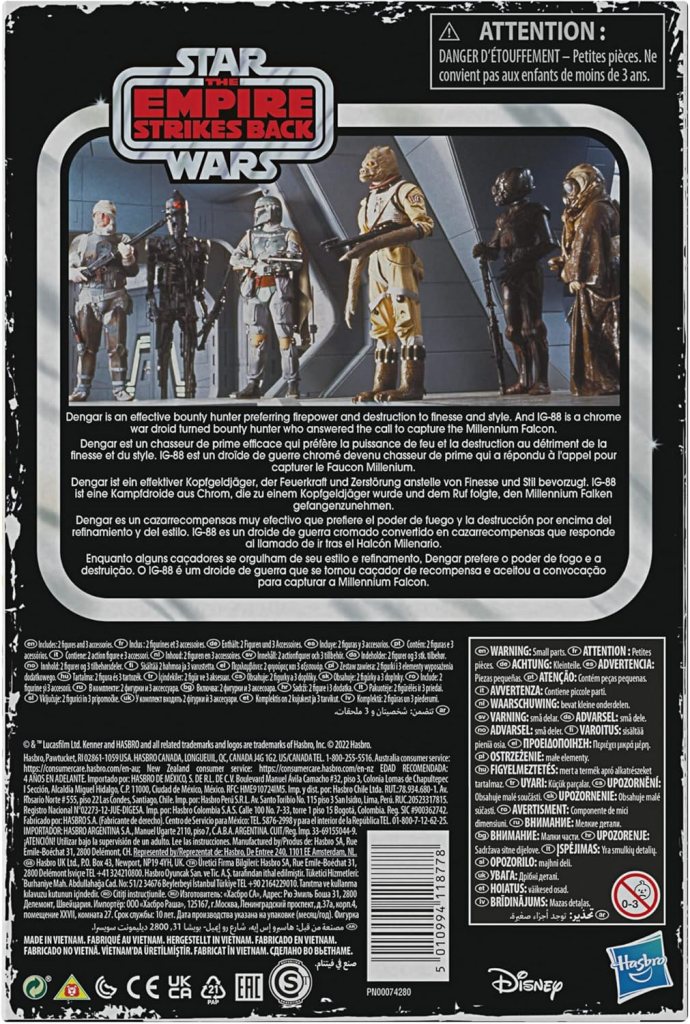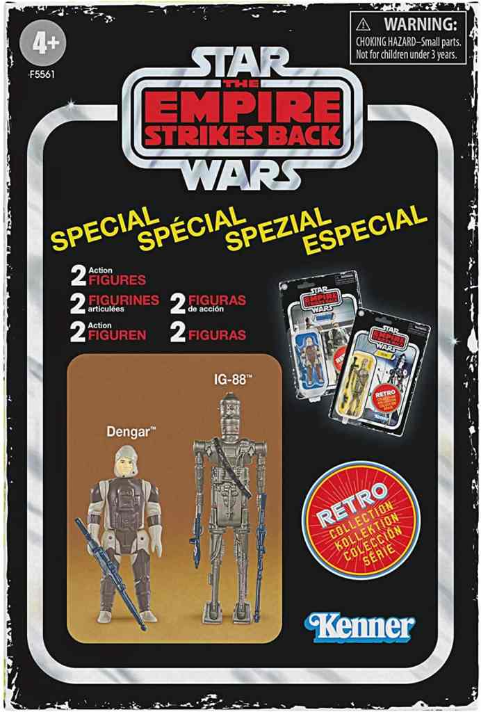 Die Star Wars Retro-Kollektion umfasst Figuren zur über 40-jährigen Geschichte der Star Wars Galaxis, einschließlich Star Wars Filme und Live-Action-Serien. Die 9,5 cm große Action-Figuren aus der Retro-Kollektion sind detailgetreu, sodass sie den Charakteren Dengar & IG-88 aus dem Klassiker „Star Wars: Das Imperium schlägt zurück“ gleichen und verfügen über ein durch die Star Wars Figuren der 1970er inspiriertes Design.