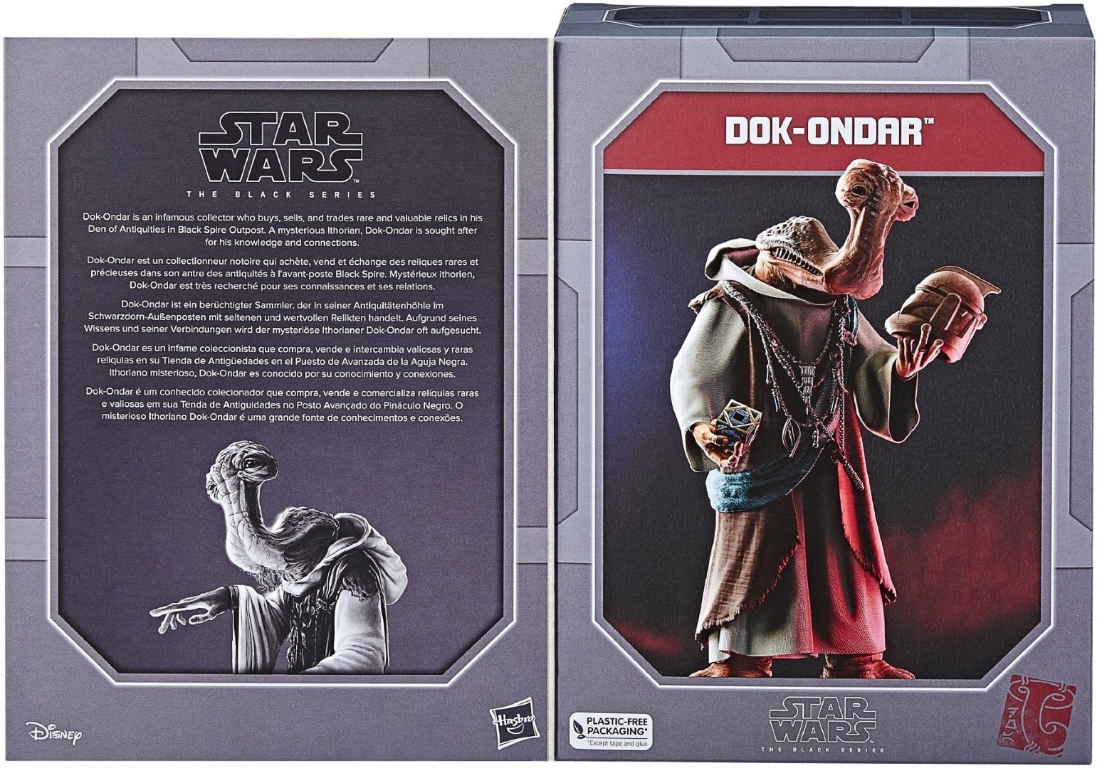 Dok-Ondar ist ein Sammler und Händler von antiken Artefakten und seltenen Gegenständen aus der gesamten Galaxie und bekannt aus den „Star Wars: Galaxy’s Edge“-Themenparks. Er ist ein Ithorianer, eine Spezies mit einem charakteristischen doppelten Mund und langem Hals.