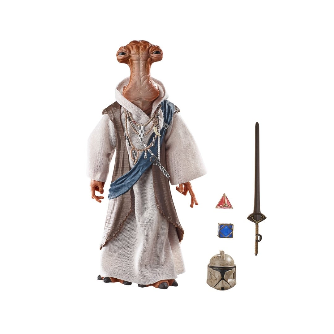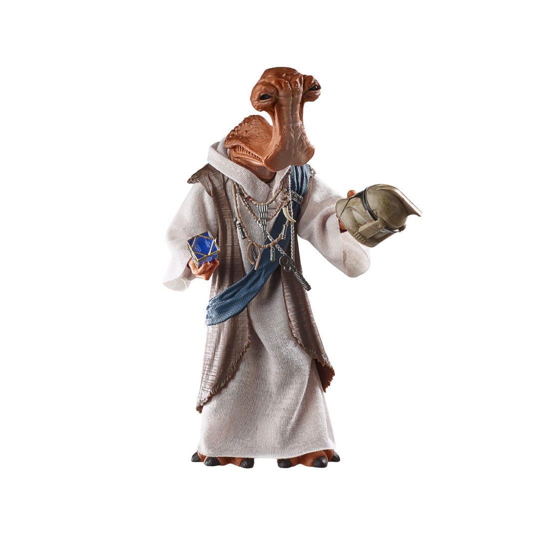 STAR WARS fans and collectors can imagine scenes from the STAR WARS galaxy with this premium 6-inch STAR WARS: THE BLACK SERIES DOK-ONDAR figure, inspired by the character’s appearance in STAR WARS entertainment. Known as the gatekeeper of the black market, mysterious Ithorian Dok-Ondar is an infamous collector who buys, sells, and trades rare and valuable relics in his Den of Antiquities in Black Spire Outpost. He has amassed an impressive collection of unique artifacts that is unrivaled in the galaxy and is sought after for his knowledge and connections. Fans and collectors can display this fully articulated figure featuring premium detail and multiple points of articulation in their collection. Includes figure and 4 accessories, including a sword of Khashyun accessory.