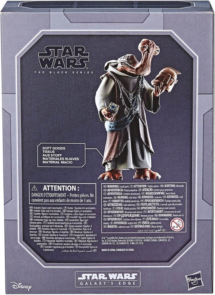 „Wie bereits in der großen Hasbro-Übersicht zur Star Wars Celebration 2023 erwähnt, erscheint neben allen Mainline-Releases auch eine Dok-Ondar-Figur, die auf dem Character aus Galaxy’s Edge basiert.
