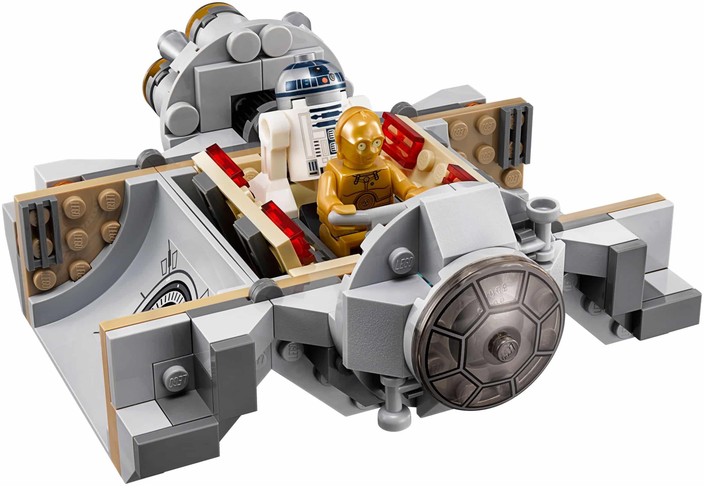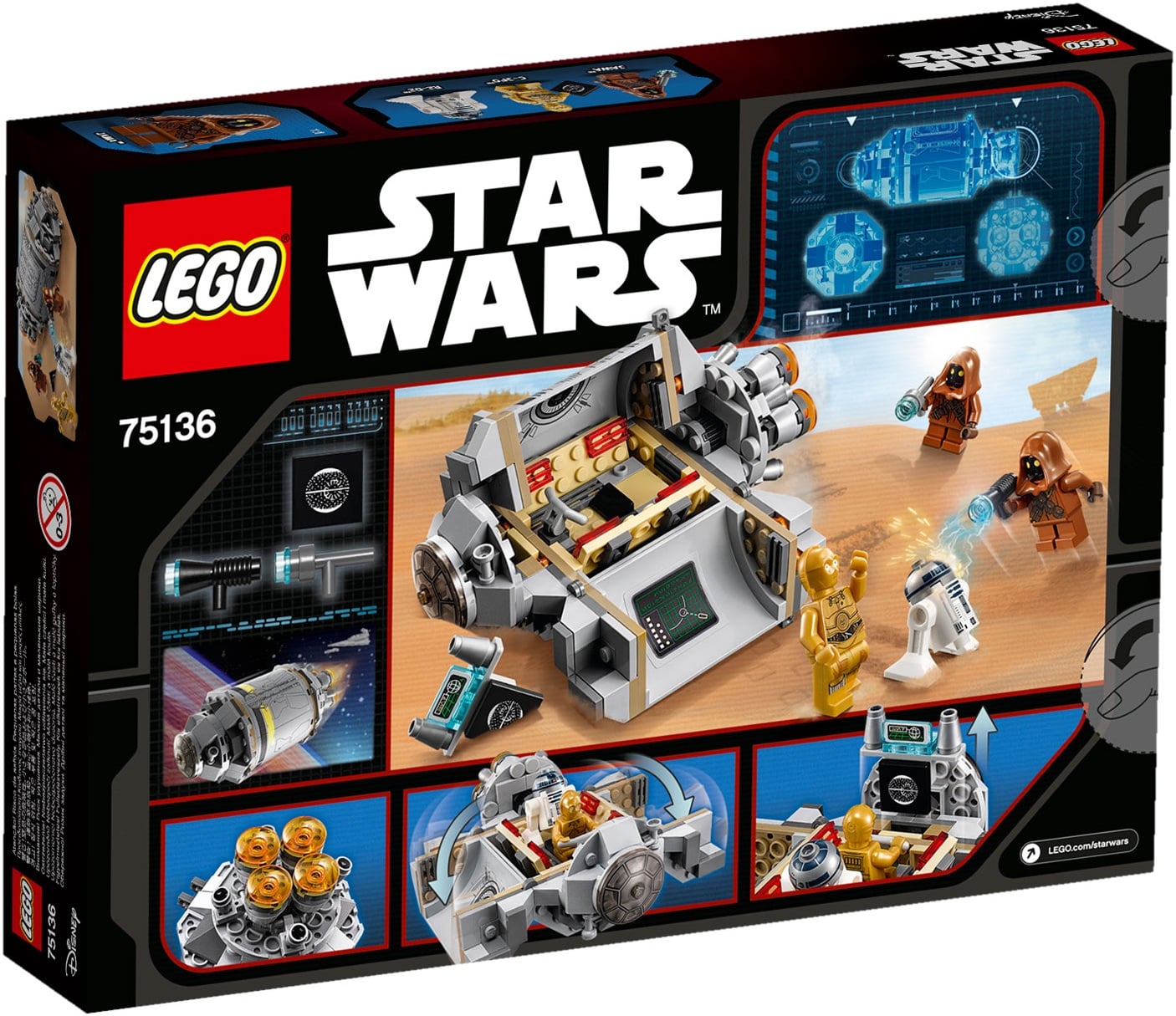 Begib‘ dich an Bord der Droid-Rettungskapsel, um dich mit den geheimen Plänen für den Todesstern aus dem Staub zu machen. Die Rettungskapsel verfügt über aufklappbare Luken und einen detaillierten Innenraum. Außerdem enthält das Set C-3PO und 2 Jawas als Minifiguren, sowie R2-D2.