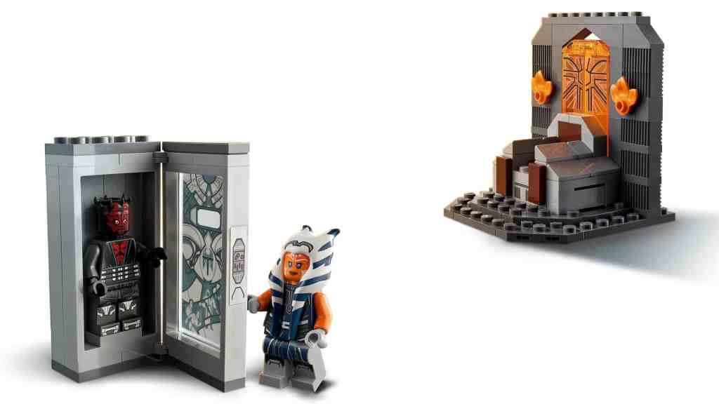 • Beinhaltet einen baubaren Thron mit Geheimfach, in dem sich eine Blasterpistole verbirgt, eine dekorative Kulisse mit Fenster sowie eine mandalorianische Stahlkammer mit Platz für eine LEGO® Minifigur.
