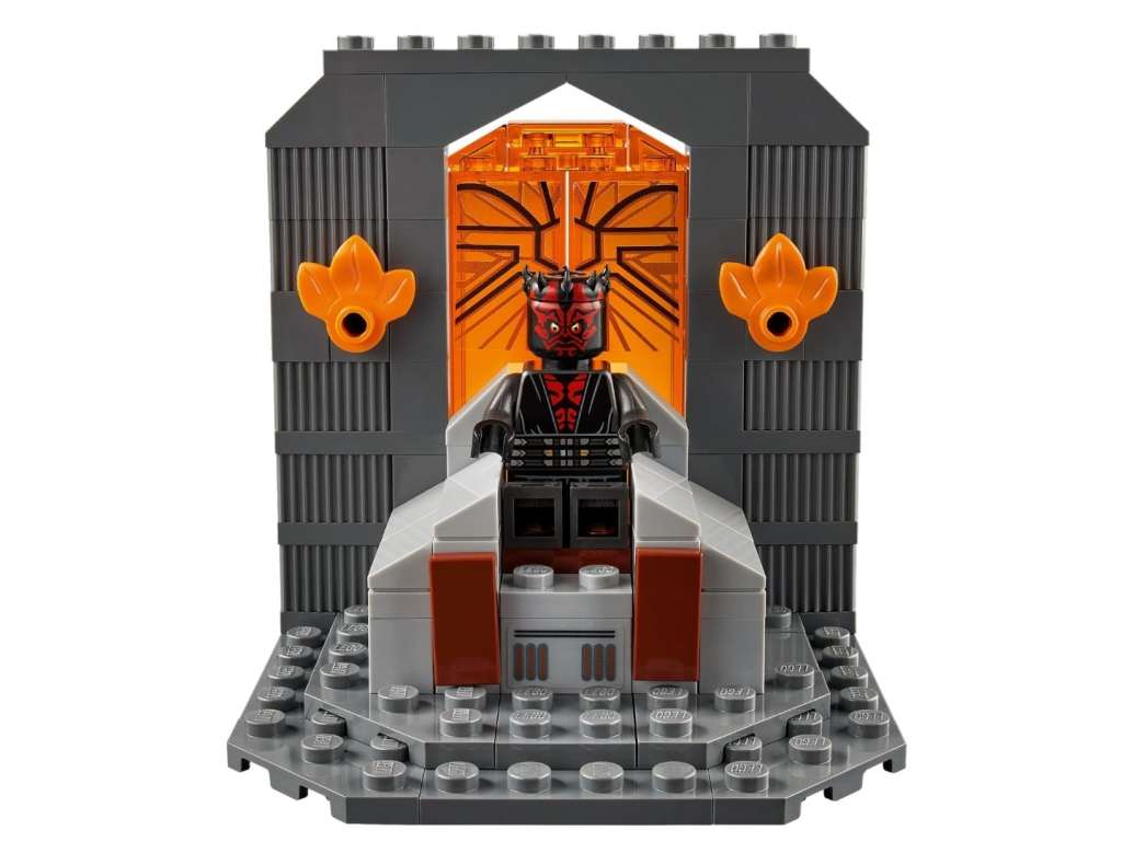 Mit dem Bau- und Spielset „Duell auf Mandalore™“ (75310) können junge Fans die spannenden Actionszenen aus Star Wars: The Clone Wars nachspielen. Das Set zum Mitnehmen beinhaltet einen Thron aus LEGO® Steinen mit einer Blasterpistole in einem Geheimfach. Sperre Darth Maul in die mandalorianische Stahlkammer.