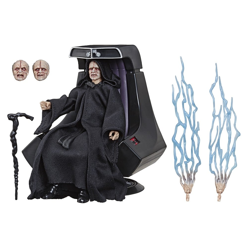 Emperor Palpatine kommt als Deluxe-Version, zusammen mit seinem Thron und sogar zwei zusätzlichen austauschbaren Köpfen mit verschiedenen Gesichtsausdrücken. Außerdem werden zwei Hände mit schicken Machtblitzen im Lieferumfang enthalten sein.