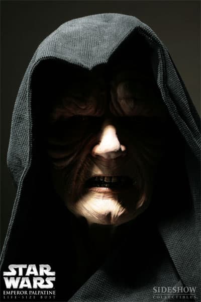 The life-size Palpatine bust captures the Emperor, the Dark Lord of the Sith, in all his stately serenity, evil intent visible behind his cold stare. The Palpatine bust is mounted on a Star Wars inspired display base, including a ‚Palpatine‘ nameplate. The hand crafted, hand painted life-size Palpatine bust is sure to become a supreme addition to any Star Wars collection.