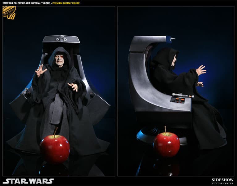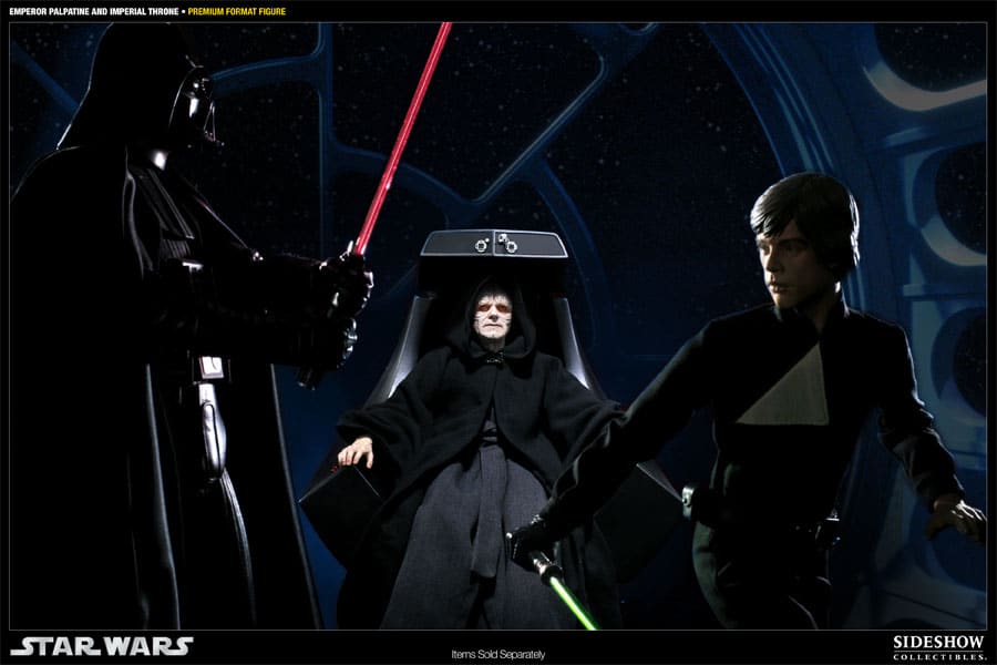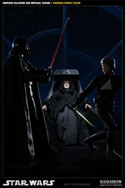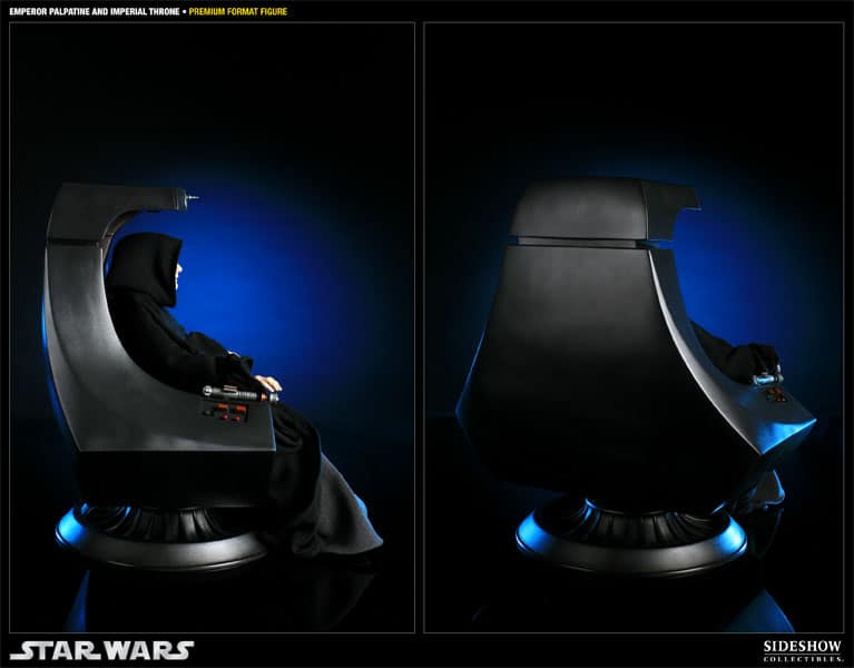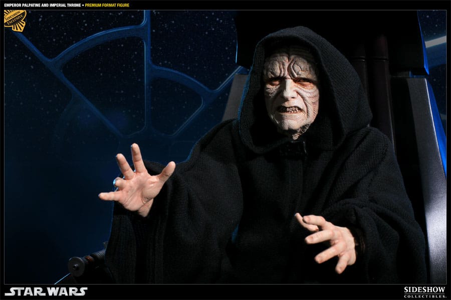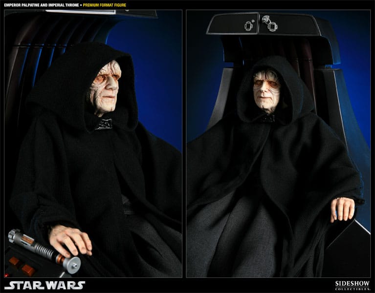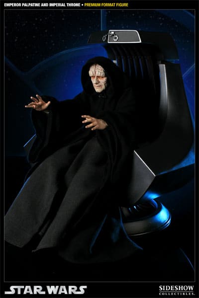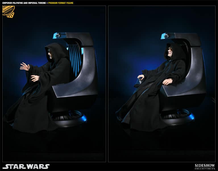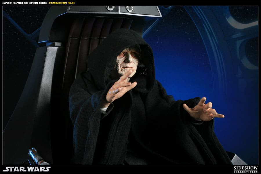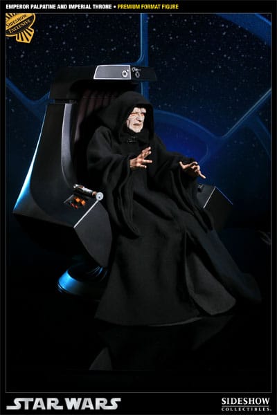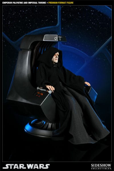 The Emperor Palpatine and Imperial Throne Premium Format figure captures every detail of the disguised Darth Sidious upon his seat of power over the Galactic Senate. Each piece is individually painted and finished, each with its own unique quality and detail that is the trademark of a handcrafted Sideshow Collectibles product. This dynamic Premium Format figure is dressed in real fabric robes and features posability in the shoulders, waist, and neck, plus switch-out hands for a customizable display. In addition, the figure comes with a light saber hilt to represent the scene of Luke Skywalker’s capture at the hands of Darth Vader. The polystone and fiberglass Imperial Throne includes electronic light features. The Emperor Palpatine and Imperial Throne Premium Format Figure is the perfect addition to any Star Wars display.