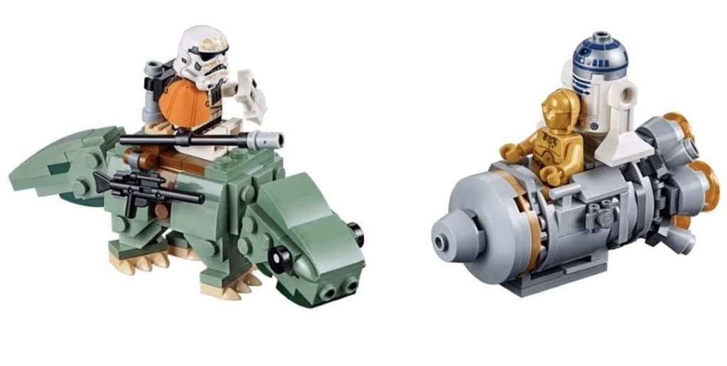 - Das Bauset enthält außerdem einen Dewback mit verstellbarem Kopf und Schwanz, Halterungen für die Ausrüstung und einem Sitzplatz für den Sandtrooper auf dem Rücken des Dewbacks.