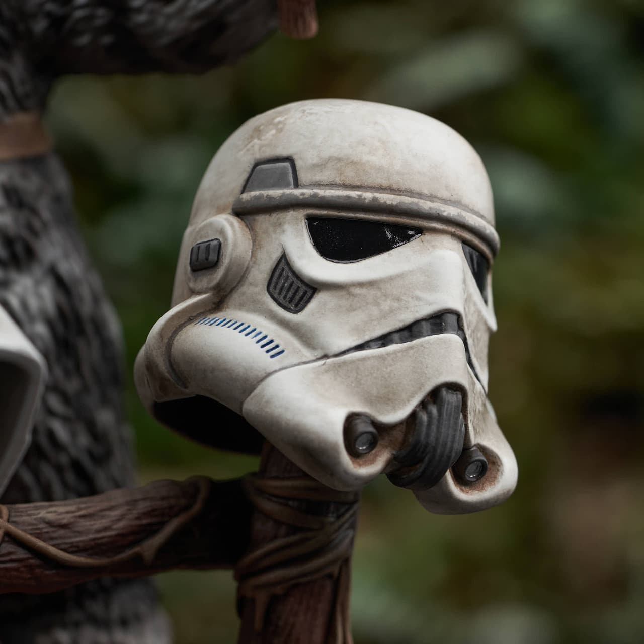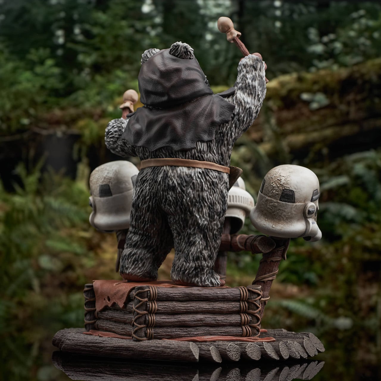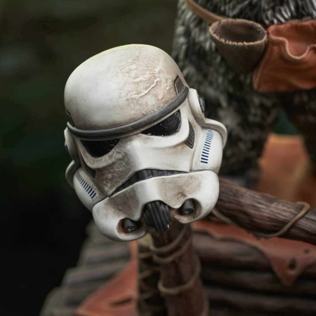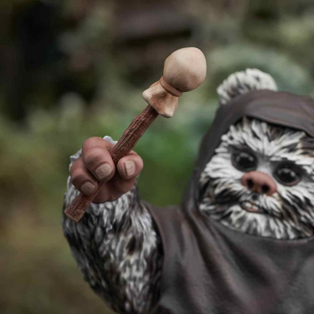 A Gentle Giant LTD release! Yub yub! Time to celebrate! With the second Death Star destroyed, and Imperial forces on Endor’s forest moon on the run, it’s time for an Ewok party, featuring a drum solo on Stormtrooper helmets! The Ewok drummer, Breethupp, raises his drumsticks as he prepares to drop a beat on three helmets, in a scene straight out of Star Wars: Return of the Jedi. Measuring approximately 9 inches tall, this 1/6 scale statue features detailed sculpting and paint applications, and is limited to only 500 pieces. It comes packaged in a full-color box with a numbered certificate of authenticity.