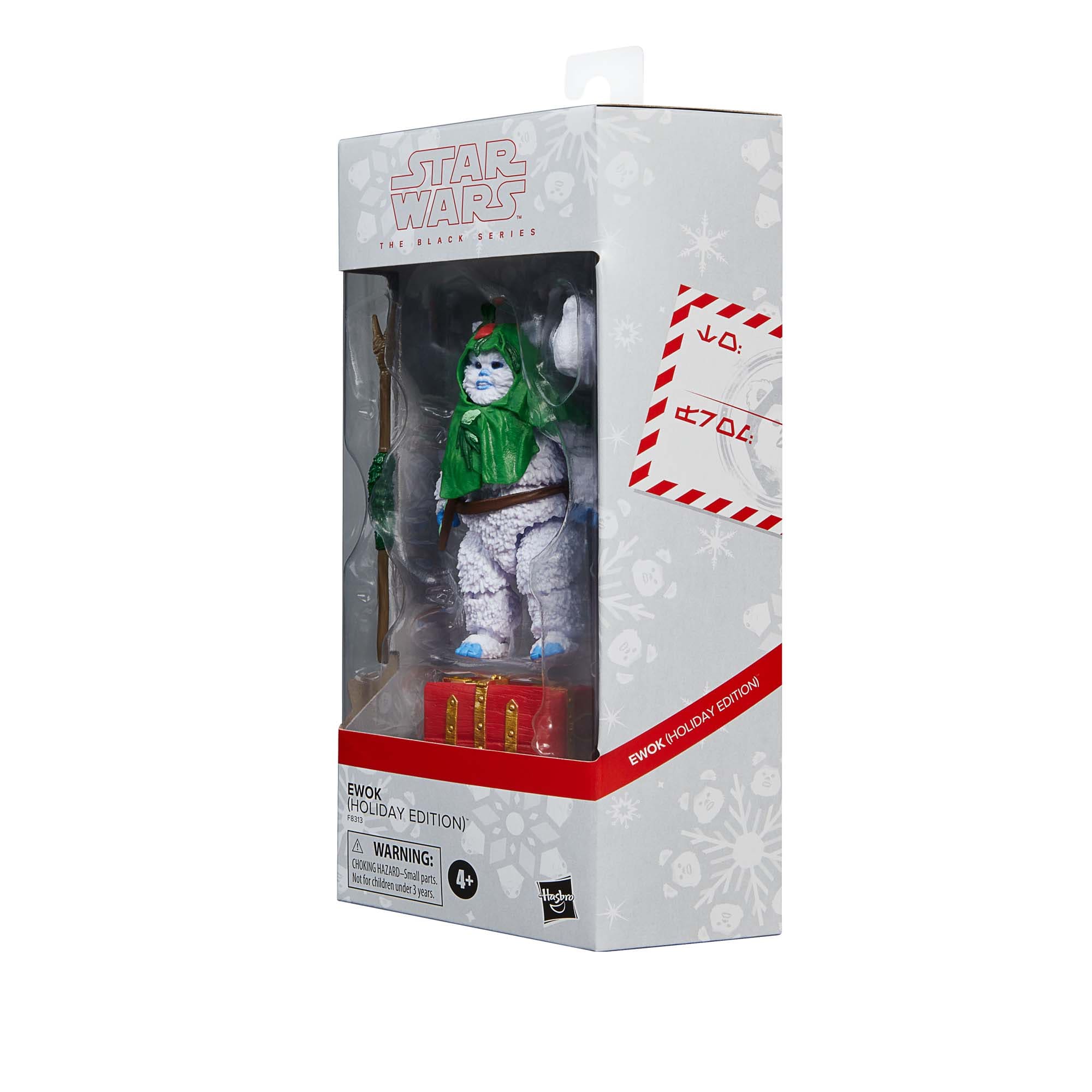 STAR WARS fans and collectors can celebrate the season and imagine scenes from the STAR WARS galaxy with this special 6-inch scale EWOK (HOLIDAY EDITION) figure, featuring holiday-themed deco, including a cloak in festive colors, and packaging. The figure comes with an included Porg toy; and makes a great gift for kids, 4 and up. Includes figure and 3 entertainment-inspired accessories.
