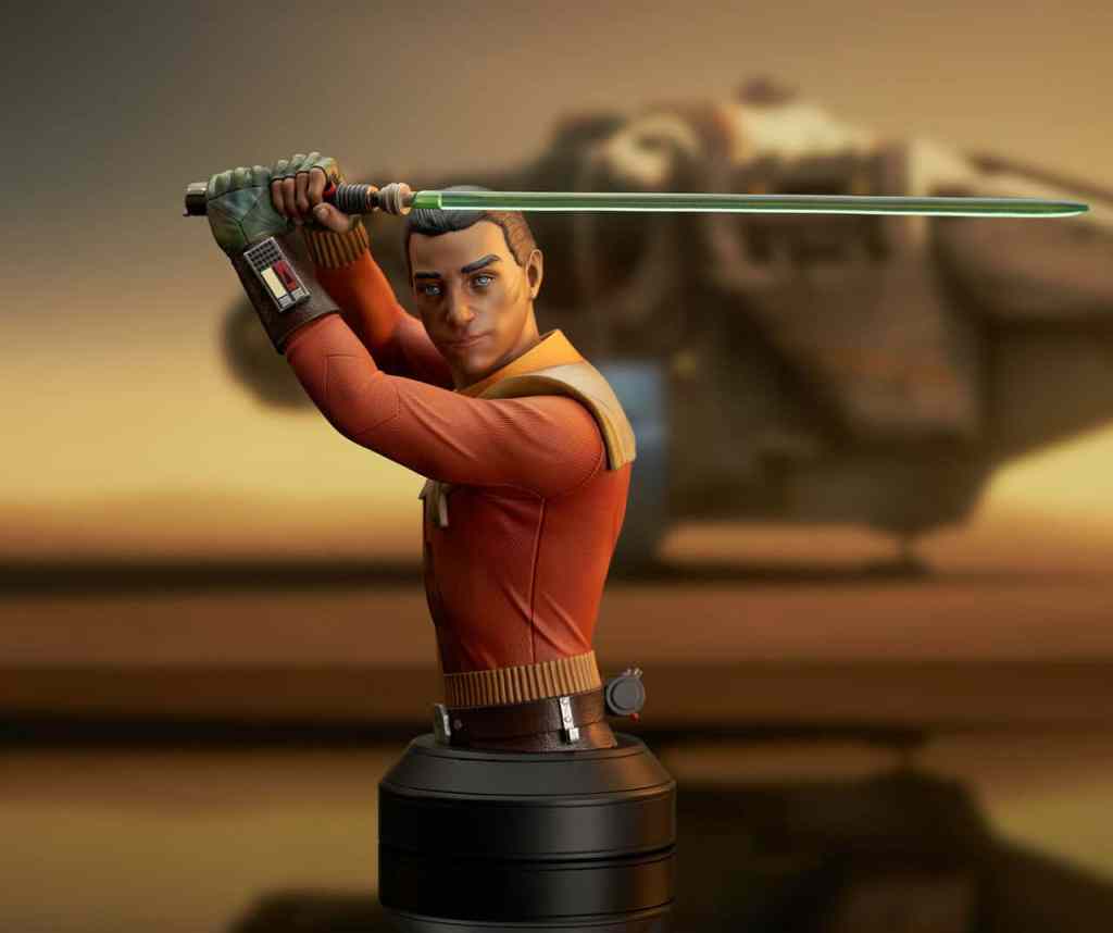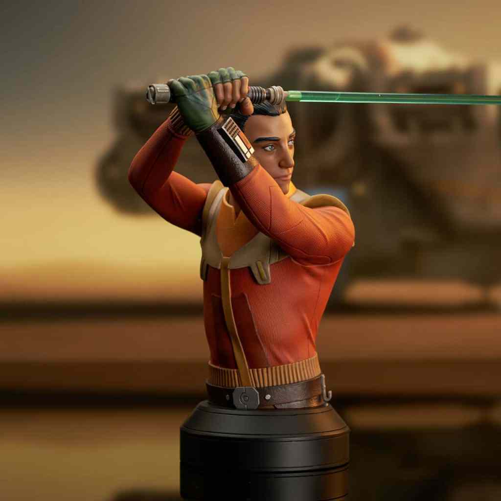 The newest member of the Ghost crew, Jedi-in-training Ezra Bridger wields his green lightsaber in this newest mini-bust based on Star Wars: Rebels! Measuring approximately 6 inches tall, this 1/6 scale bust features detailed sculpting and paint applications and sits atop a pedestal base. Limited to only 2000 pieces, it comes packaged in a full-color box with a numbered certificate of authenticity.
