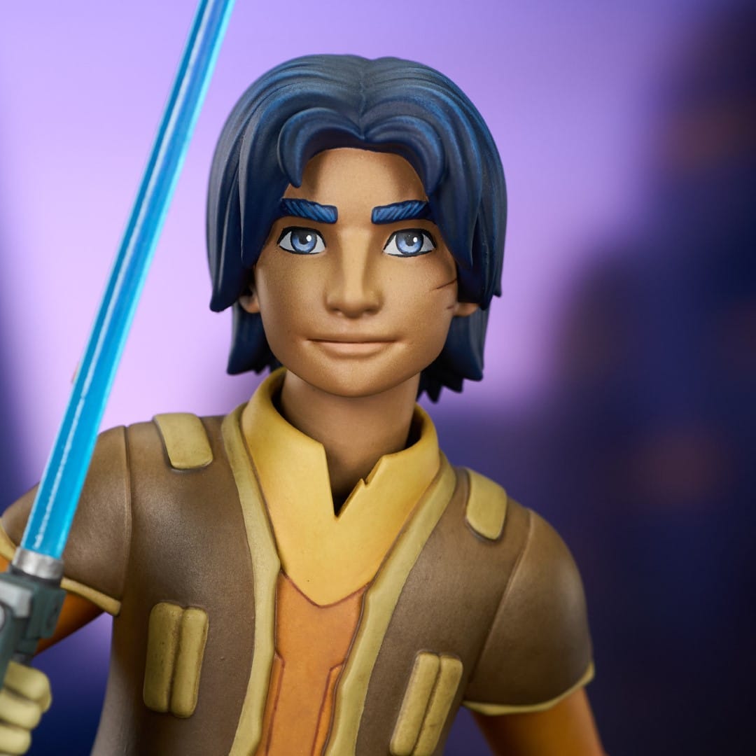 A Gentle Giant LTD release! The padawan has arrived! Discovered and trained by Kanan Jarrus, future Jedi Ezra Bridger began as a street urchin and con artist, and this mini-bust captures his young animated appearance from Star Wars: Rebels! Measuring approximately 5 inches tall (8 inches with lightsaber blade), this stylized mini-bust is limited to only 2,000 pieces, and comes packaged in a full-color window box with a numbered certficate of authenticity.