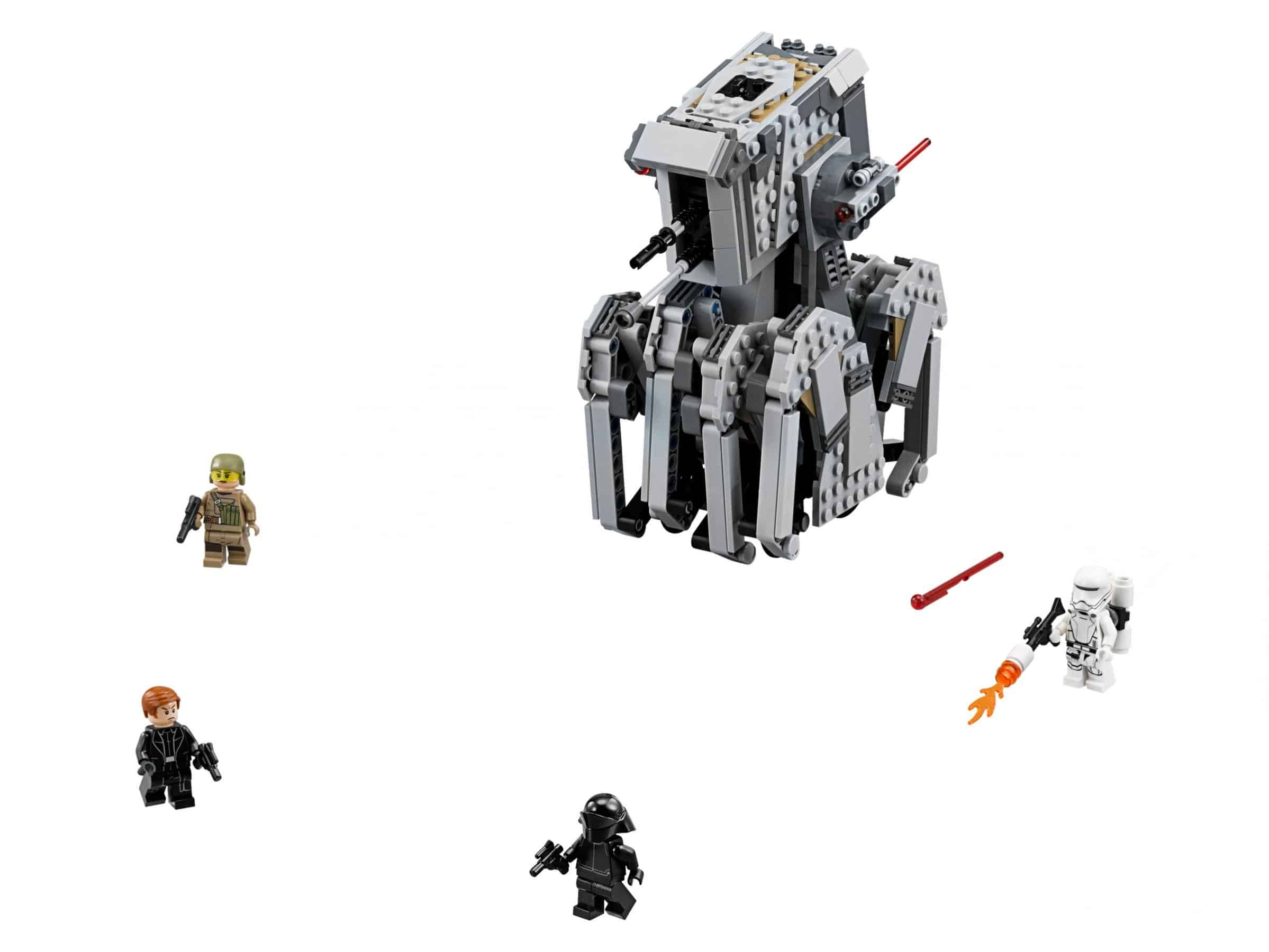 Benutze den gepanzerten First Order Heavy Scout Walker, um General Hux und seine Crew zum Schauplatz des Geschehens zu bringen. Diese eindrucksvolle LEGO® Star Wars Version des Walkers aus dem Kinoerfolg „Star Wars: Episode VIII“ verfügt über ein Cockpit für 2 Minifiguren mit aufklappbarer Dachluke, hochschwenkbare federunterstützte Shooter an beiden Seiten, hochschwenkbare Frontkanonen, Halterungen zur Aufbewahrung der Raketen sowie verborgene Räder, die gedreht werden können, um die Beine „krabbeln“ zu lassen. Dieses Set enthält auch 4 Minifiguren.