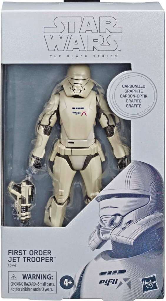 Da sind noch nicht einmal die offiziellen Bilder zur kommenden Black Series Wave 22 verfügbar, da tauchen bereits die ersten Figuren der darauffolgenden Wave 23 bei ebay auf. Die Rede ist von einem First Order Jet Trooper in der Carbonized-Variante in einer schicken Box.