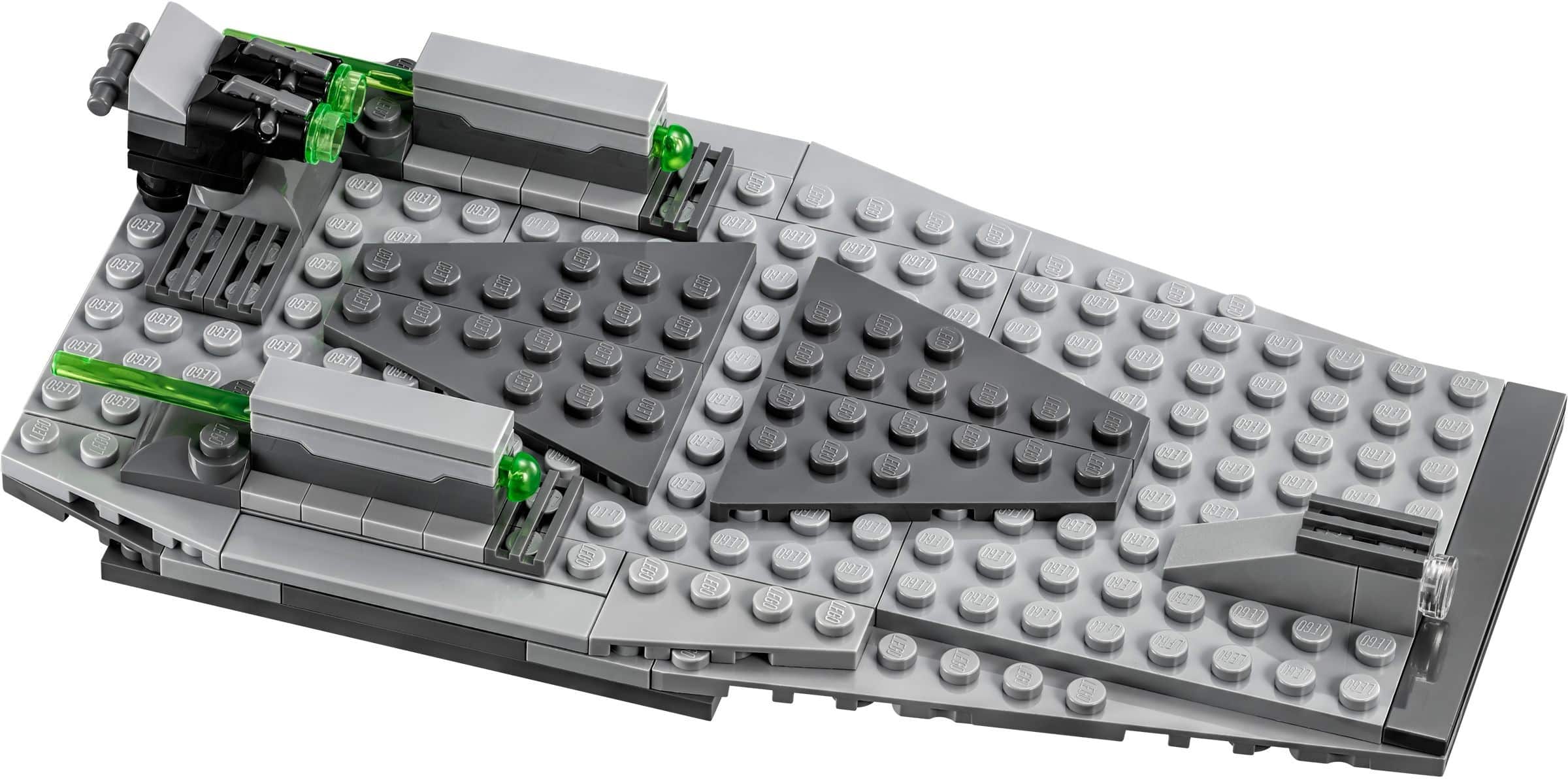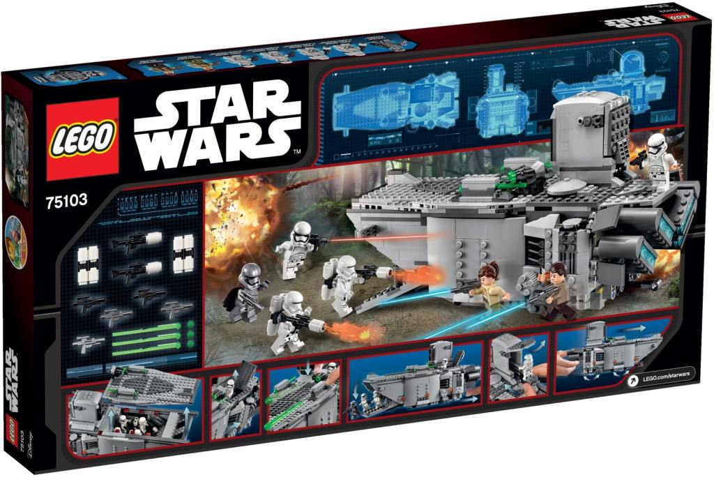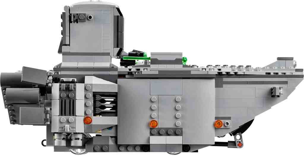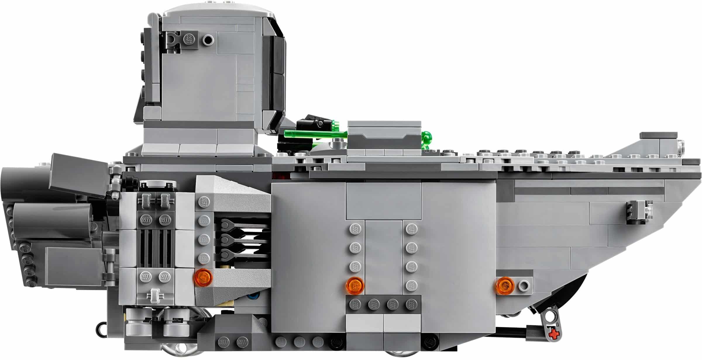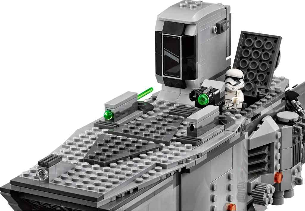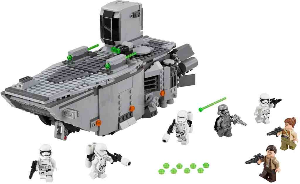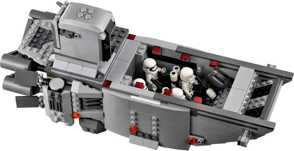 Der First Order Transporter verfügt über federunterstützte Shooter, einen Shooter, eine herunterklappbare Laderampe, 4 Minifiguren, ein abnehmbares Dach und mehr.
