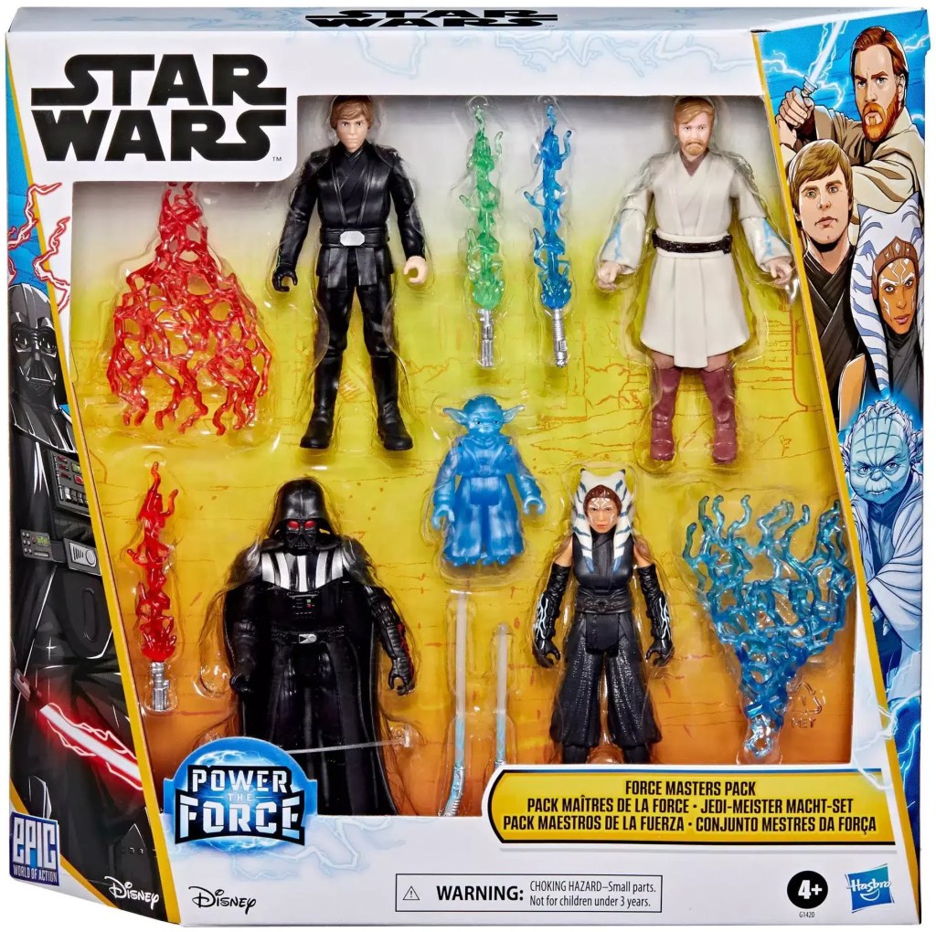 Delight the Star Wars fan in your life with the Star Wars Epic World of Action Force Masters Pack. This Star Wars toy set comes with an Obi-Wan Kenobi action figure, a Luke Skywalker action figure, an Ahsoka Tano action figure, a Darth Vader action figure, a Force Ghost Yoda action figure, and 7 accessories that fit in the figures‘ hands. These 4-inch scale Star Wars figures feature multiple points of articulation for poseable play and make a great gift for kids ages 4 and up. Look for even more figures and vehicles to collect across Hasbro’s Epic World of Action, featuring kid-favorite characters and entertainment-inspired design. (Each sold separately. Subject to availability.)