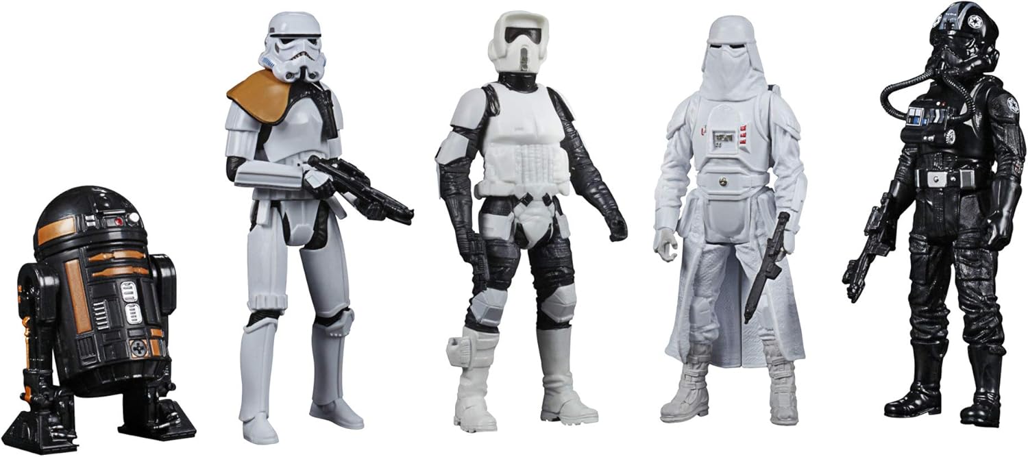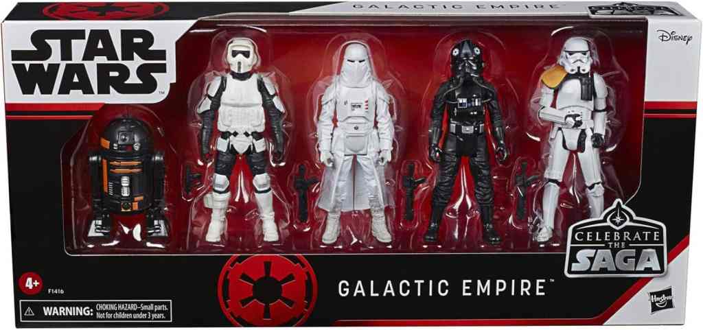 - KULTIGE STAR WARS CHARAKTERE: Der Star Wars Celebrate the Saga Galaktisches Imperium-Pack kommt mit TIE-Jägerpilot, Snowtrooper, Stormtrooper Squad Anführer und Scout Trooper Action-Figuren mit mehreren Bewegungspunkten und einer R2-Q5 Figur