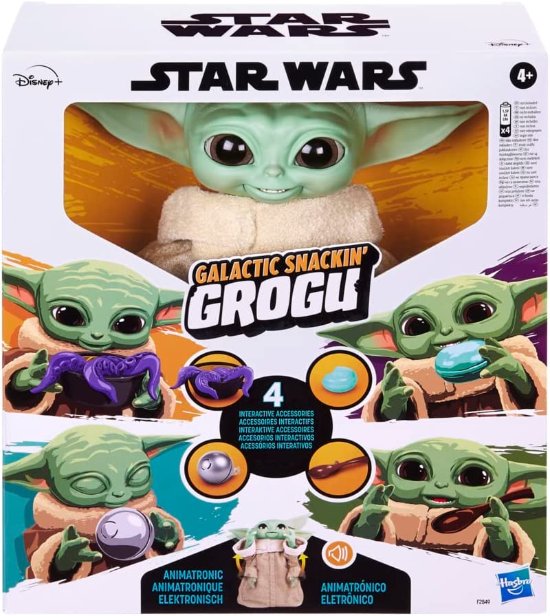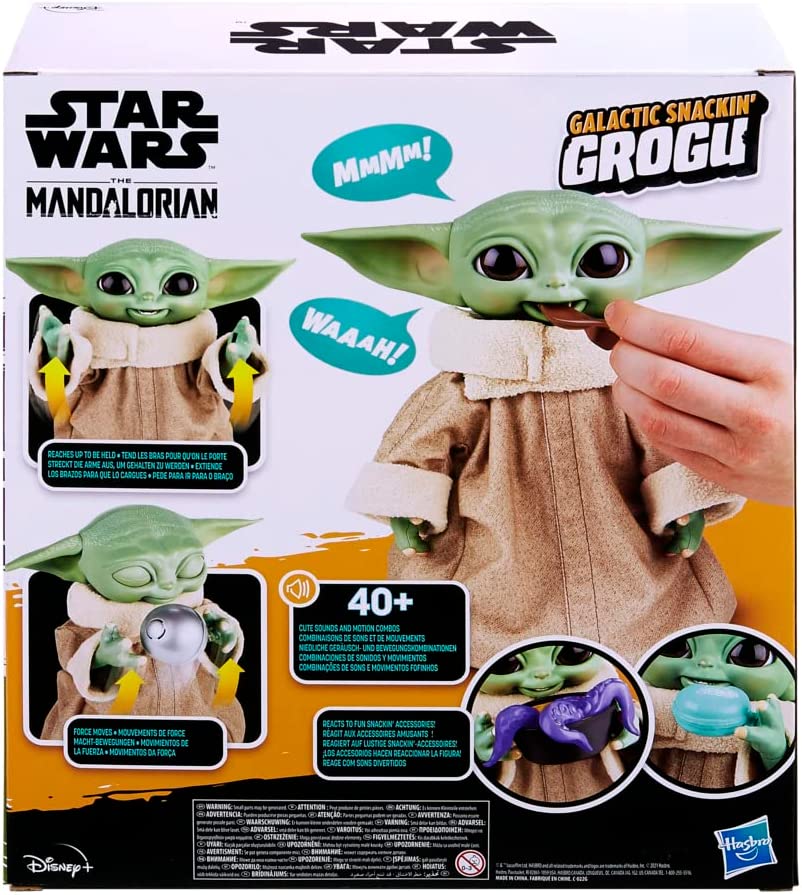 - Hold Me Please: Galactic Snackin’ Grogu will let kids ages 4 and up know when he wants to be picked up and held by reaching up with both arms