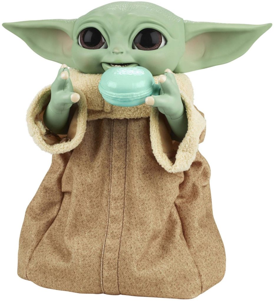 „Grogu (The Child), affectionately referred to by fans as “Baby Yoda,” is hungry for Force snackin’ fun! With a galaxy of features, including adorable sounds, fun animated motions, and interactive accessories, this animatronic toy is ready for action and adventure! Place any of the included entertainment-inspired accessories in his hand and he’ll react! Put an accessory in his mouth, and he’ll make eating sounds that let you know if he thinks it’s yummy or yucky! When Grogu (The Child) wants to be picked up and held, he’ll reach up with both arms. And with Force activation, the Galactic Snackin’ Grogu toy will perform a 2-handed Force move, inspired by scenes from season 2 of the live-action series The Mandalorian on Disney+!