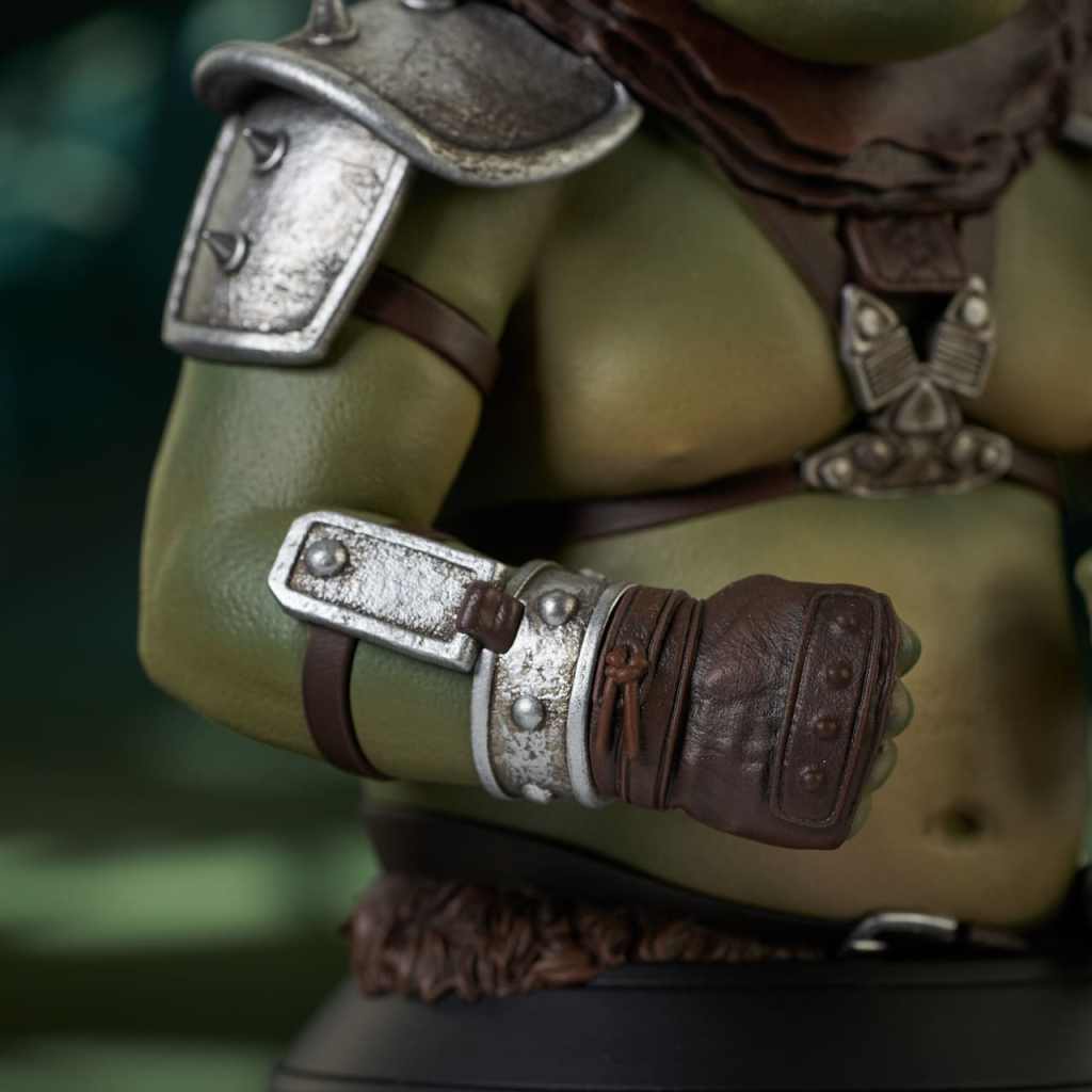 A Gentle Giant LTD release! It’s time to go green! I honor of St. Patrick’s Day, Gentle Giant, Ltd. is proud to introduce their newest 1/6 Scale mini-bust, of the green-skinned Gamorrean Guard. Based on its appearance in Star Wars: The Book of Boba Fett, this web-exclusive mini-bust stands approximately 6 inches tall and depicts the porcine warrior in a fighting stance, with his dagger at his waist. Limited to only 1,000 pieces, it comes with a numbered certificate of authenticity in a full-color box.