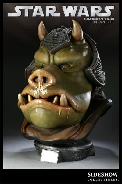 Sideshow is proud to announce the latest addition to the STAR WARS Life-Size Bust series, the Gamorrean Guard. Capturing every detail of Jabba’s porcine enforcers, each Gamorrean Guard bust is individually painted and finished to exacting standards, each with its own unique quality and detail that is the trademark of a handcrafted Sideshow Collectibles product. The Gamorrean Guard Life-Size Bust is a truly outstanding addition to any STAR WARS collection.
