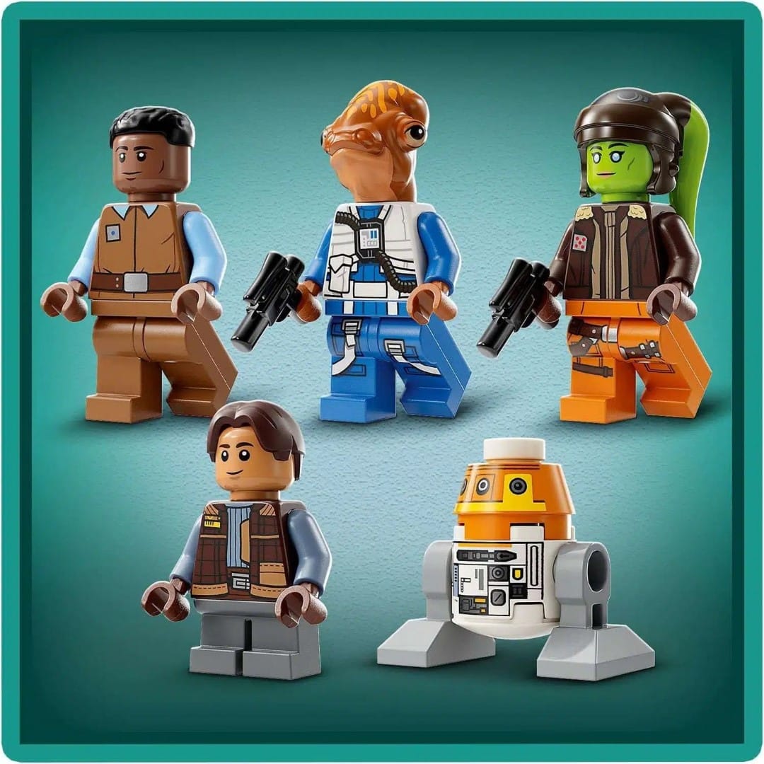 • 4 LEGO® Star Wars™ Minifiguren: Generalin Hera Syndulla und Lt. Beyta, jeweils mit Blaster-Pistole, Jacen Syndulla und Erster Offizier Hawkins, sowie der LEGO Droide Chopper (C1-10P)
