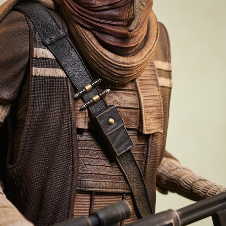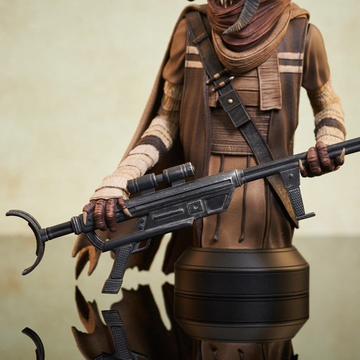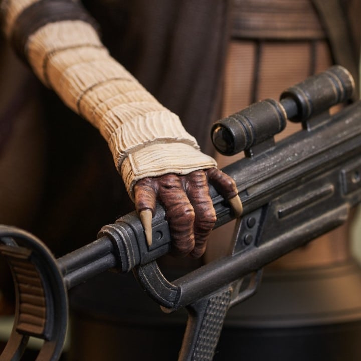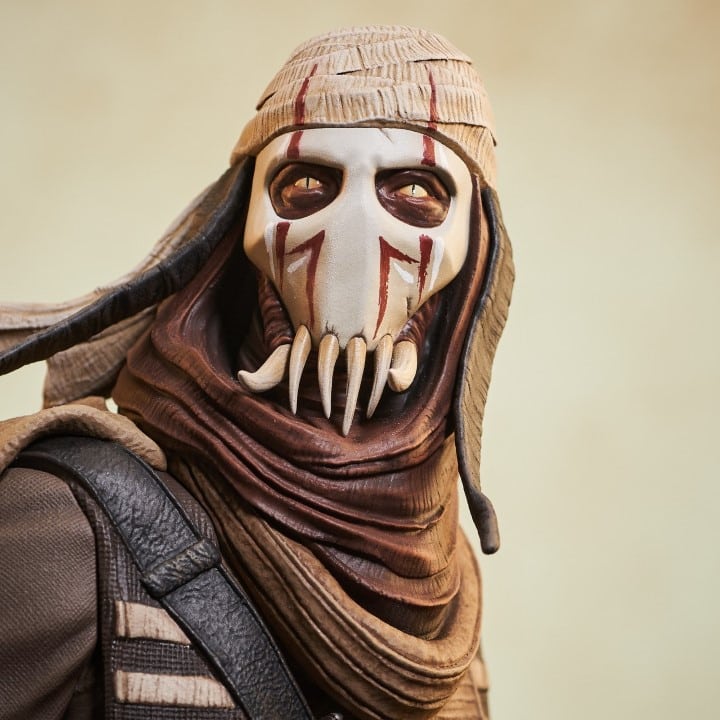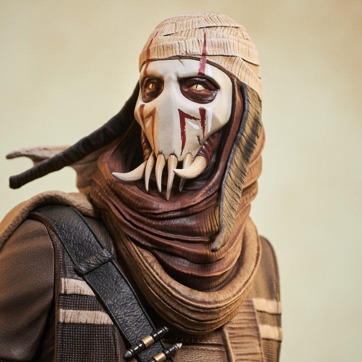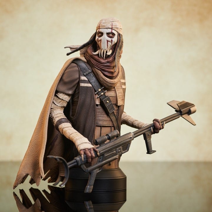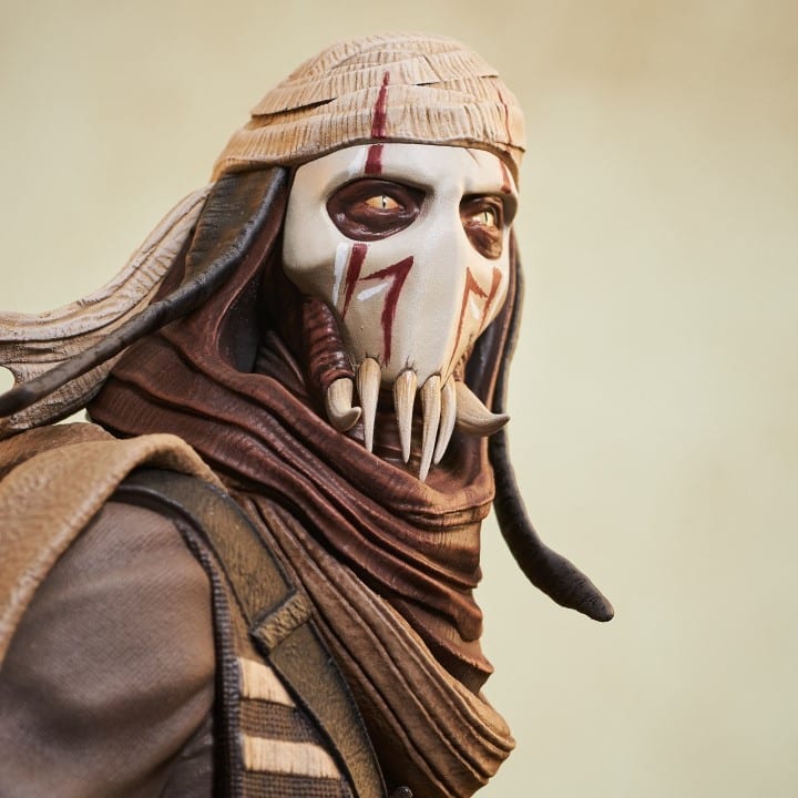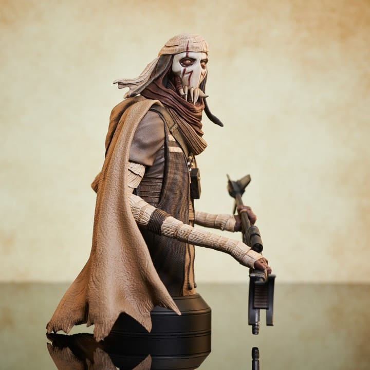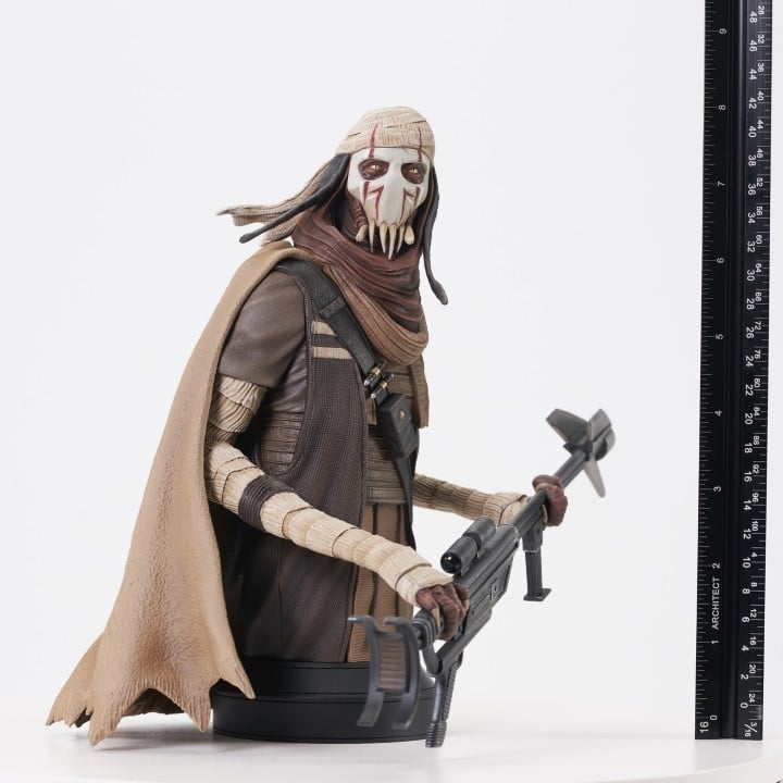 A Gentle Giant LTD release! Before he was General Grievous, he was Grievous the warlord! Hand-picked by the Separatists to lead their robot army, the Kaleesh male called Qymaen jai Sheelal was turned into a cyborg, but this bust captures him as he was before! Standing approximately 8 inches tall, this 1/6 scale mini-bust features detailed sculpting and paint applications, and is limited to only 600 pieces.