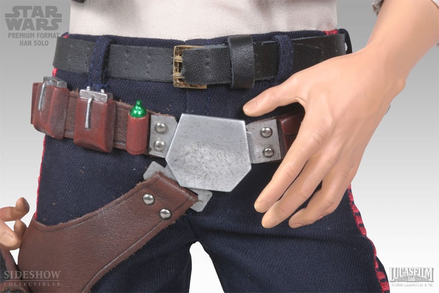 The Sideshow Collectibles 1/4 Scale Han Solo figure is fully authentic to Star Wars: A New Hope, from the Harrison Ford likeness to the Millennium Falcon interior grating inspired base. Every detail of Han’s costume and each of his accessories has been expertly captured in 1/4 scale. This dashing scoundrel is sure to charm his way to a prized spot in your collection.