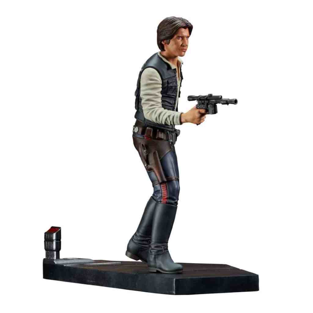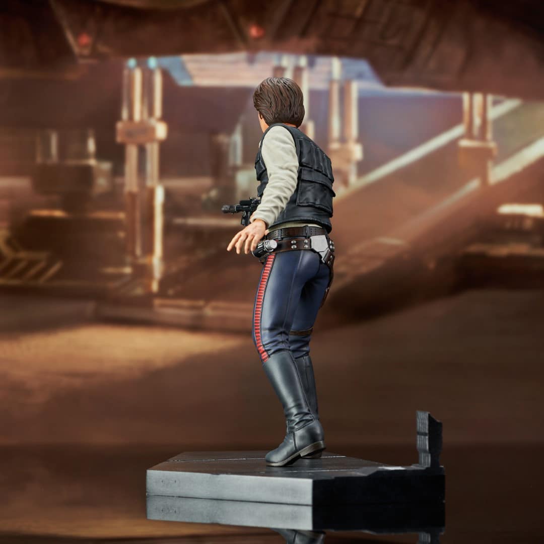 A Gentle Giant LTD release! Never tell him the odds! Han Solo draws his blaster and prepares for a fight in this all-new 1/7 scale statue, part of Gentle Giant LTD’s Premier Collection! Wearing his iconic vest and striding across a metallic landing platform, the Corellian smuggler stands approximately 10 inches tall and features detailed sculpting and paint applications. This statue is limited to only 3,000 pieces, and comes packaged with a certificate of authenticity in a full-color box.