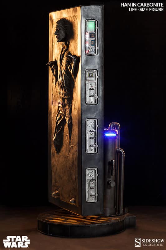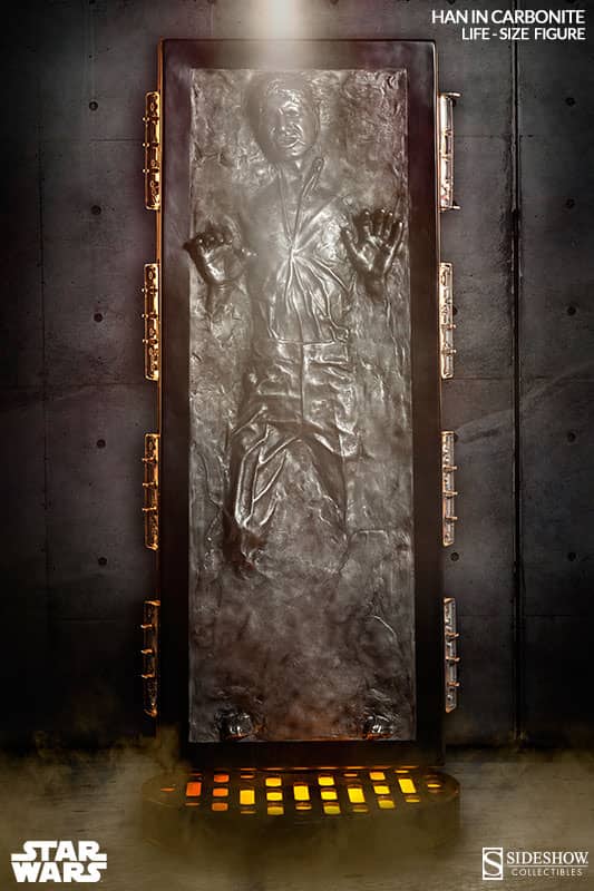 Bring home a piece of the Star Wars film legacy with the Sideshow Collectibles Han Solo in Carbonite Life-Size Figure.