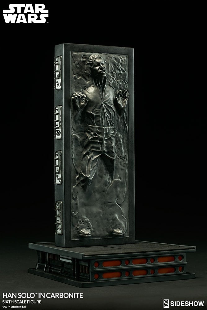 Unlike the Empire, Sideshow has a long history of working with carbonite which is why we are able to bring collectors the latest addition to our ever-expanding line of Star Wars collectible Sixth Scale figures – Han Solo in Carbonite.