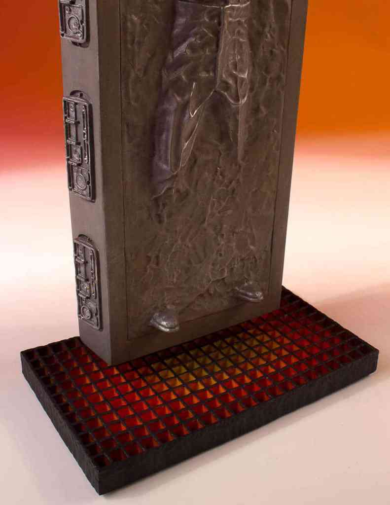 Han Solo In Carbonite is the seventh statue in Bounty Hunter 1:8th Collector’s Gallery line celebrating over 40 years of the Star Wars universe. This accurate sculpture comes from scans of the actual carbonite block prop for the ultimate attention to detail. The Han Solo’s frozen, pained expression is perfectly captured in this carbonite block, with a base that matches the alcove where the frozen Han Solo hung as a prized possession in the Mighty Jabba’s palace. Bring Han home and he can be a prize in your collection too. Pre-Order now to complete your 1:8th scale bounty hunter collection, have as a stand-alone piece or make sure your Boba Fett collector’s gallery statue is not lonely. Each limited edition, hand-painted piece is cast in high quality polyresin with crisp details. This statue comes individually numbered with a matching Certificate of Authenticity.