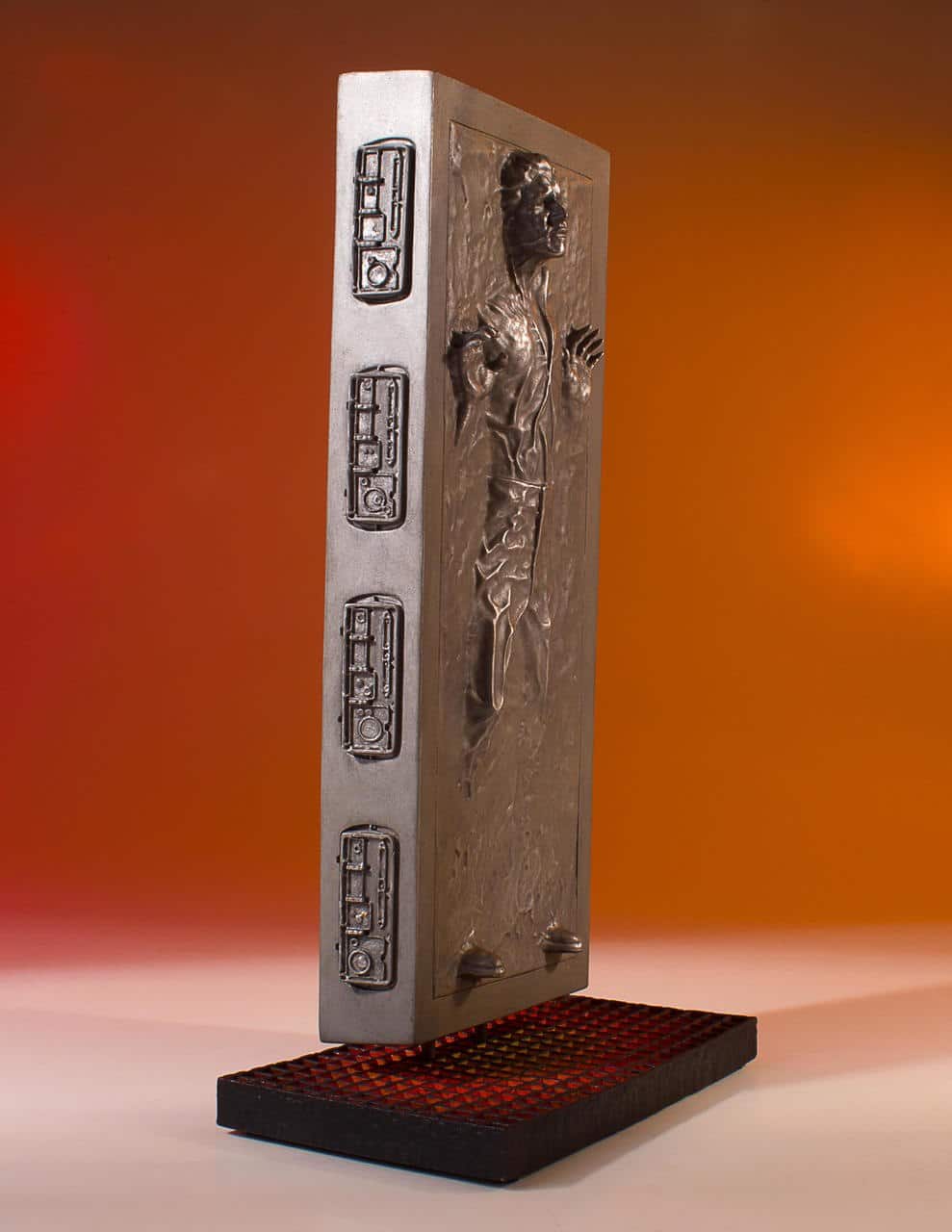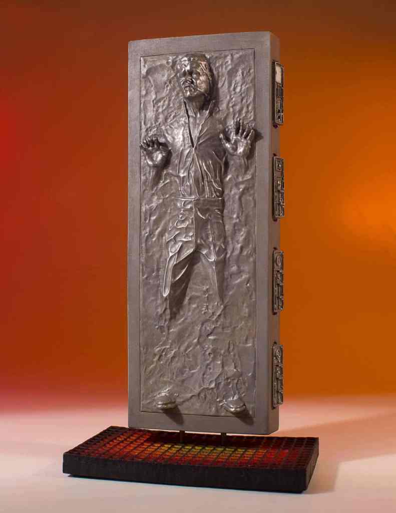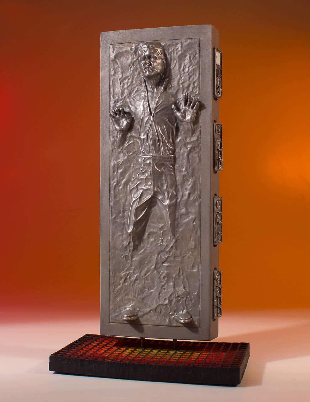Carbon-freezing is an industrial process that encases highly pressurized gasses inside of solidified carbonite. In Cloud City Darth Vader sets a trap for young Luke Skywalker to be frozen and tests the process on his prisoner Han Solo. The smuggler turned hero survived the freezing process, in perfect hibernation, and Vader hands captain Solo over to the bounty hunter Boba Fett to take back to the gangster Jabba The Hutt.