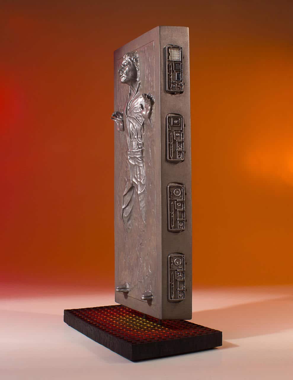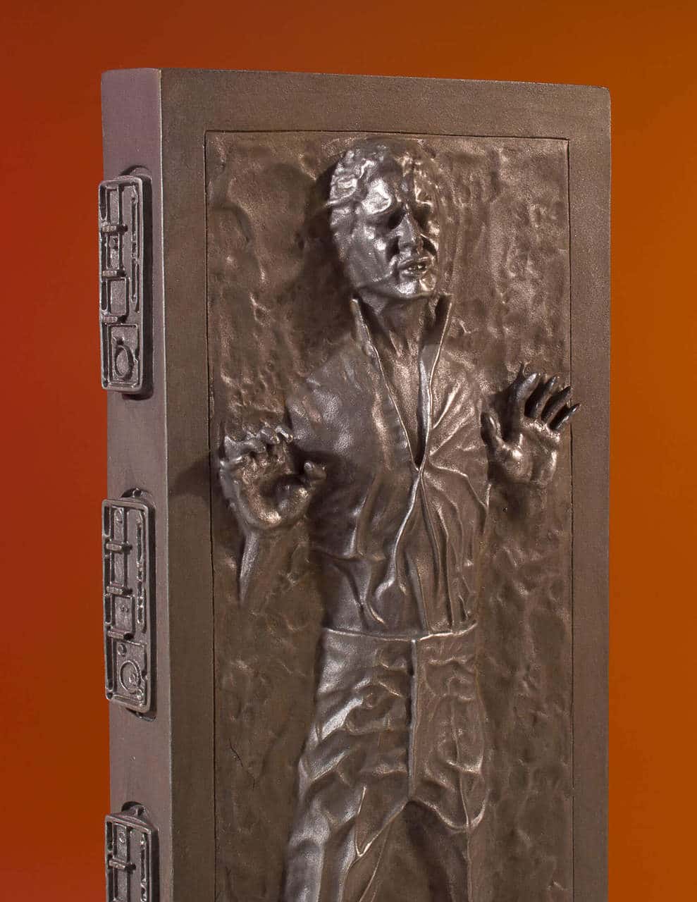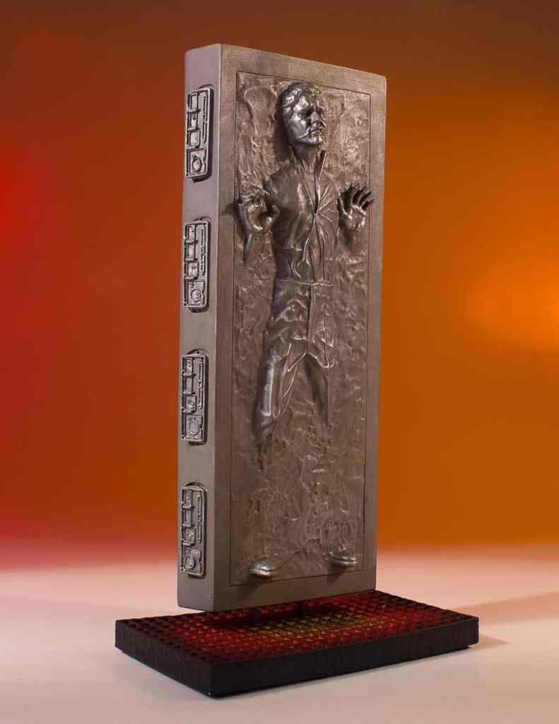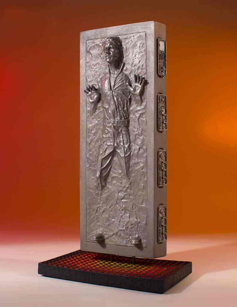 Carbon-freezing is an industrial process that encases highly pressurized gasses inside of solidified carbonite. In Cloud City Darth Vader sets a trap for young Luke Skywalker to be frozen and tests the process on his prisoner Han Solo. The smuggler turned hero survived the freezing process, in perfect hibernation, and Vader hands captain Solo over to the bounty hunter Boba Fett to take back to the gangster Jabba The Hutt.